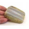 Plátek je oboustranně leštěný, což zvýrazňuje jeho kresbu a dělá z něj atraktivní sběratelský kousek i elegantní přírodní dekoraci. Díky své větší tloušťce (1,2 cm) působí masivněji a robustněji než běžné achátové řezy.