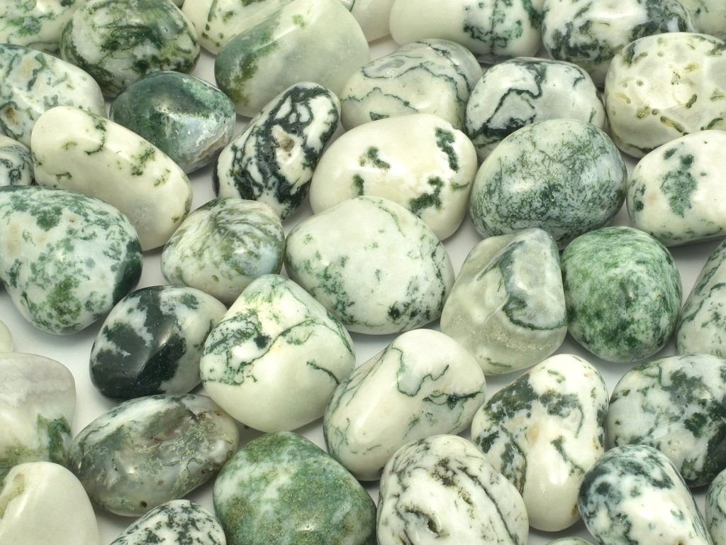 Tromlovaný stromový achát z naší nabídky je jedinečný přírodní kámen pocházející z Indie. Cena je stanovena za jeden kus tromlovaného kamene o velikosti v rozsahu 2 až 3 cm, což znamená, že obdržíte kámen, jehož největší rozměr spadá mezi tyto hodnoty. Tento druh achátu, známý také jako stromečkový (dendritický) achát, má specifickou kresbu v podobě zelených dendritů – tenkých strukturovaných vzorů připomínajících větve nebo lišejníky.