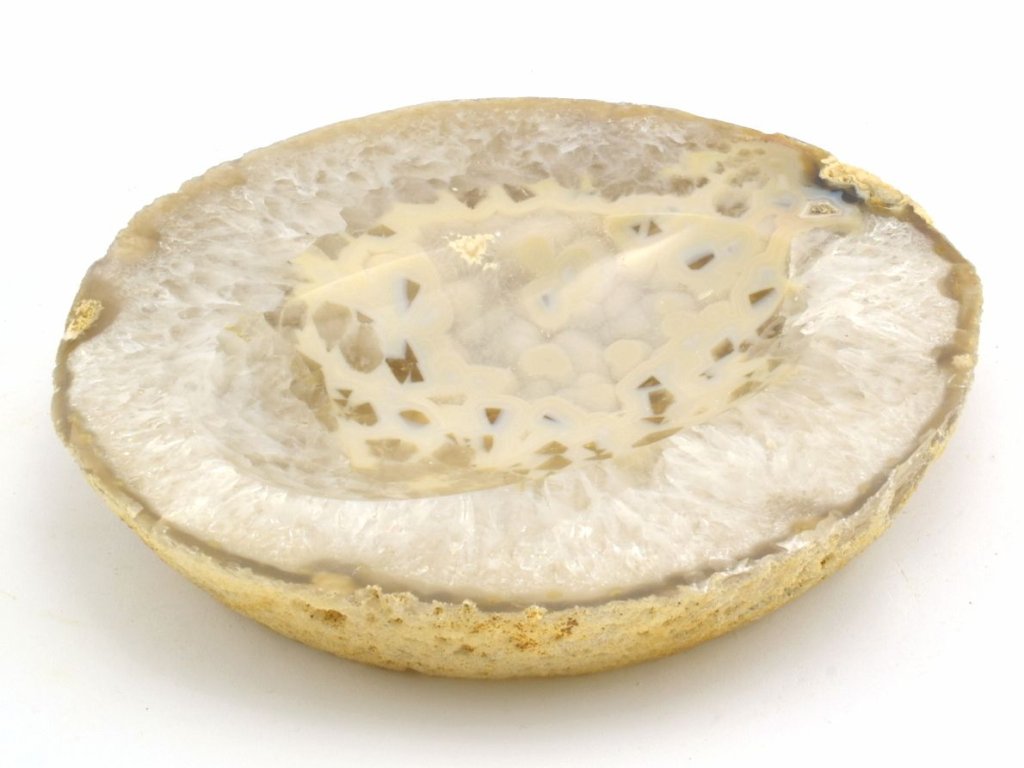 Silný jednostranně leštěný achátový plát s prohlubní (miskou) na drobné předměty.