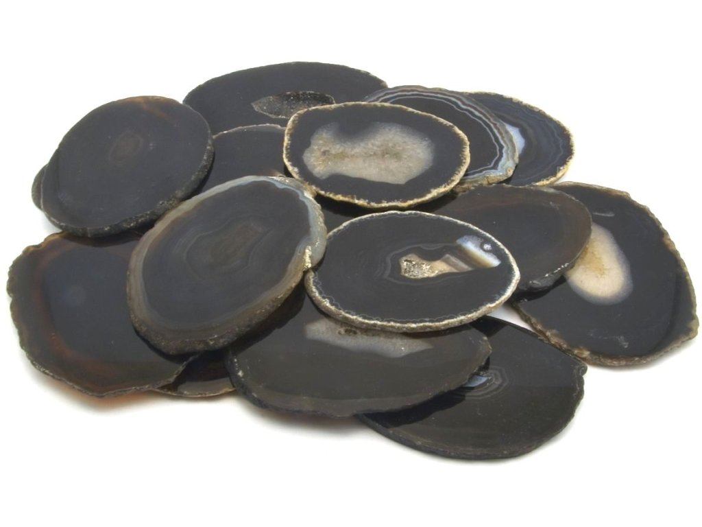 Jedná se o oboustranně leštěné, barvené achátové plátky z Brazílie. Přírodní kresba achátů vynikne při pohledu proti světlu.