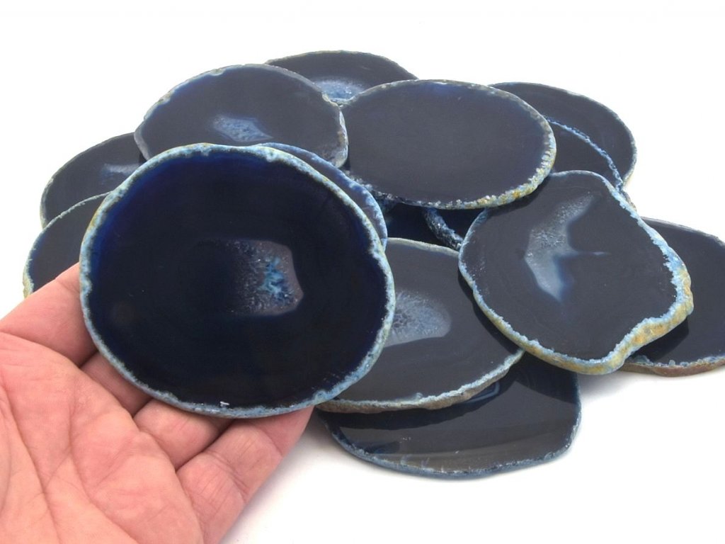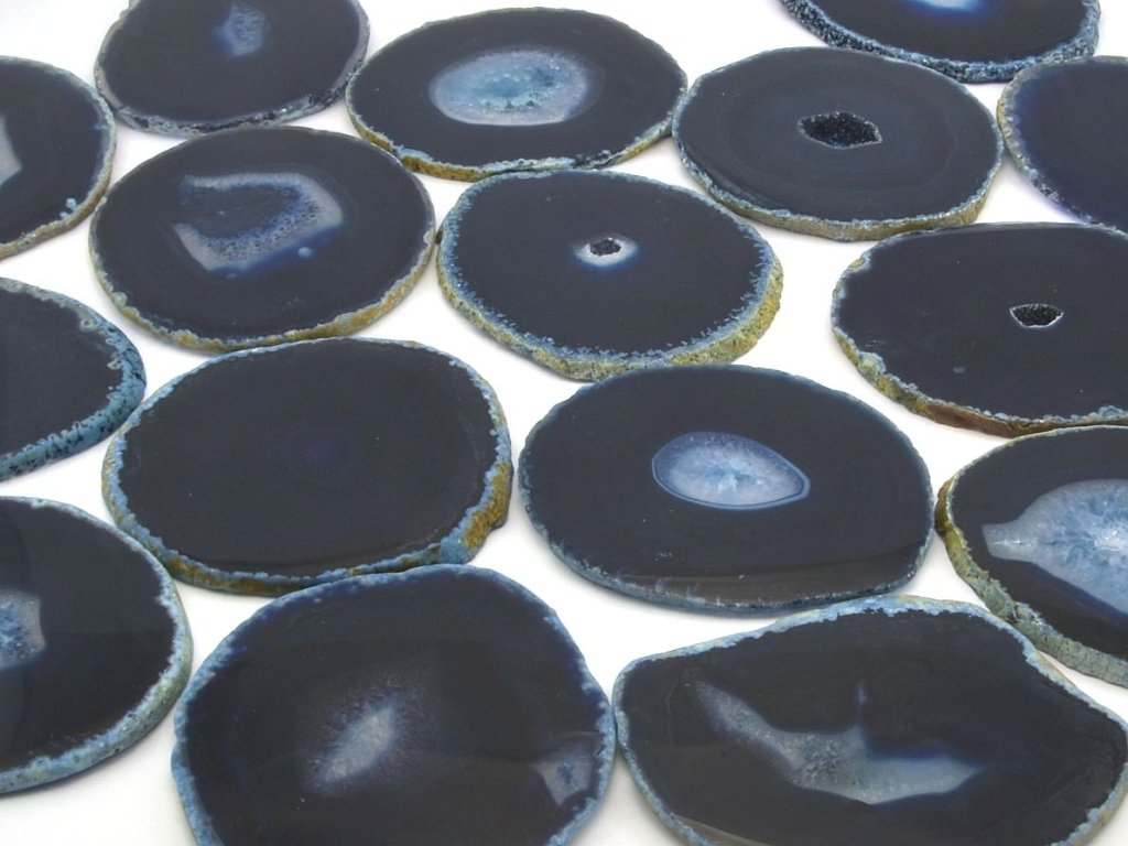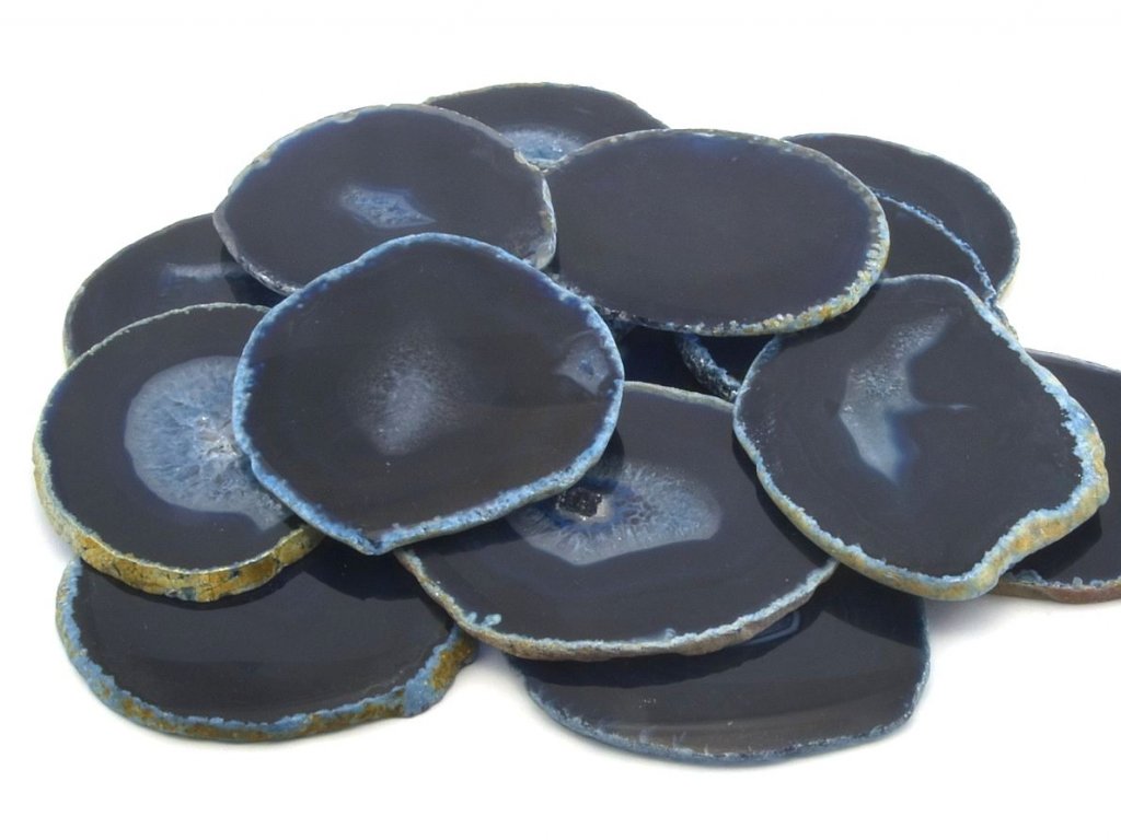 Jedná se o oboustranně leštěné, barvené achátové plátky z Brazílie. Přírodní kresba achátů vynikne při pohledu proti světlu.