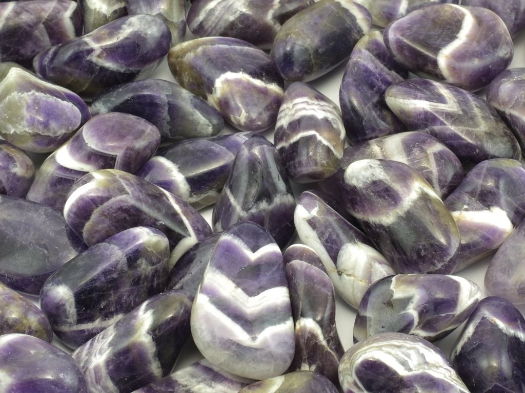 Tromlovaný ametyst chevron z naší nabídky pochází z lokality v Zambii a vyznačuje se krásnými přirozenými vzory. Tento ametyst, známý také jako "ametyst hradbový," představuje zajímavou odrůdu ametystu, která vyniká vzorem ve tvaru písmene „V“. Tento vzor vzniká střídáním vrstev bílého křemene a fialového ametystu.