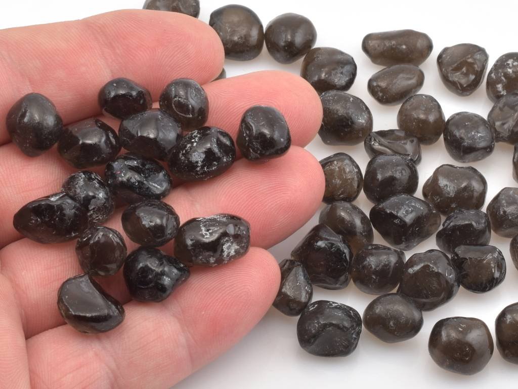 Volné, průsvitné nodule (uzlíky) obsidiánu z lokality Superior mine v Arizoně (USA).