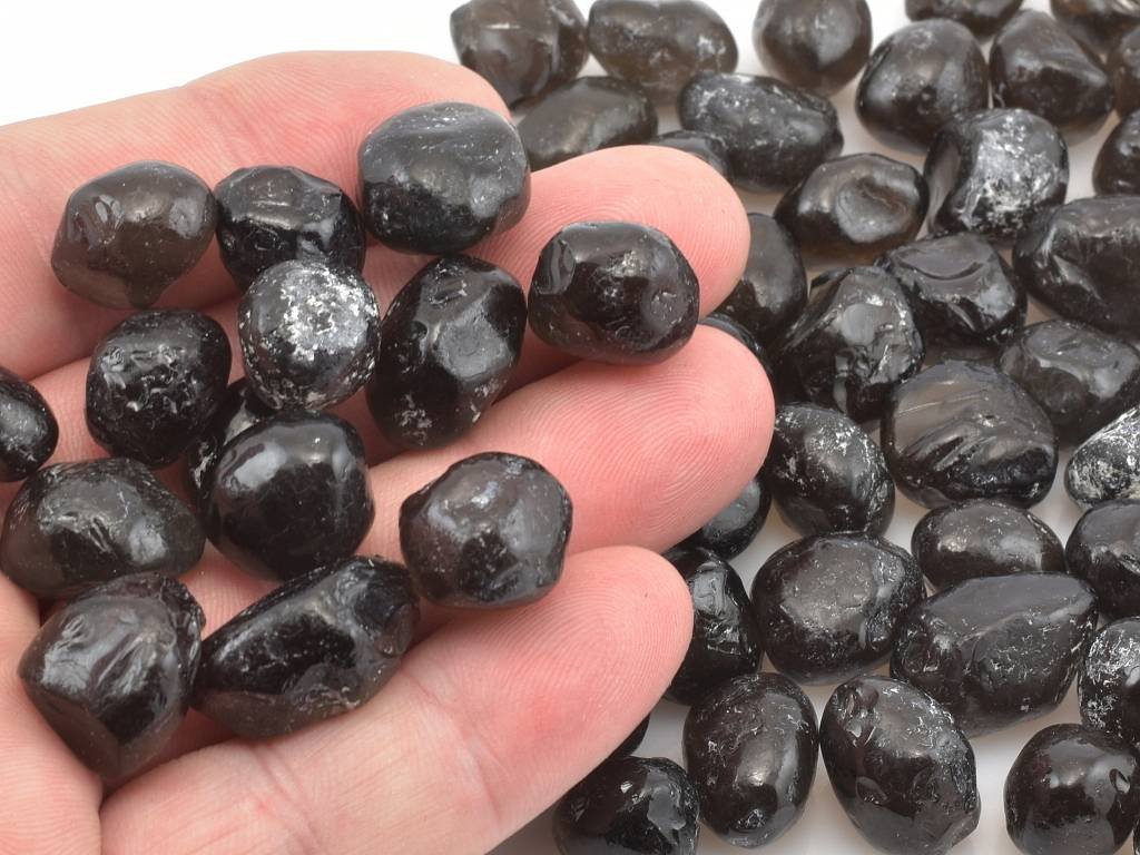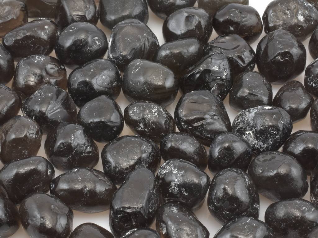 Volné, průsvitné nodule (uzlíky) obsidiánu z lokality Superior mine v Arizoně (USA).