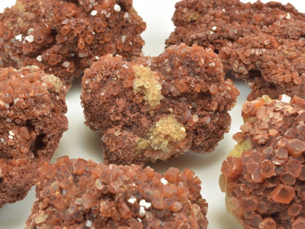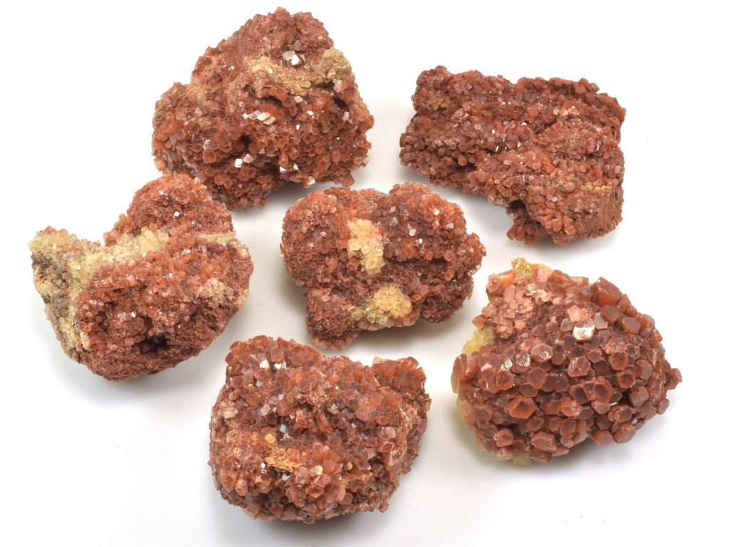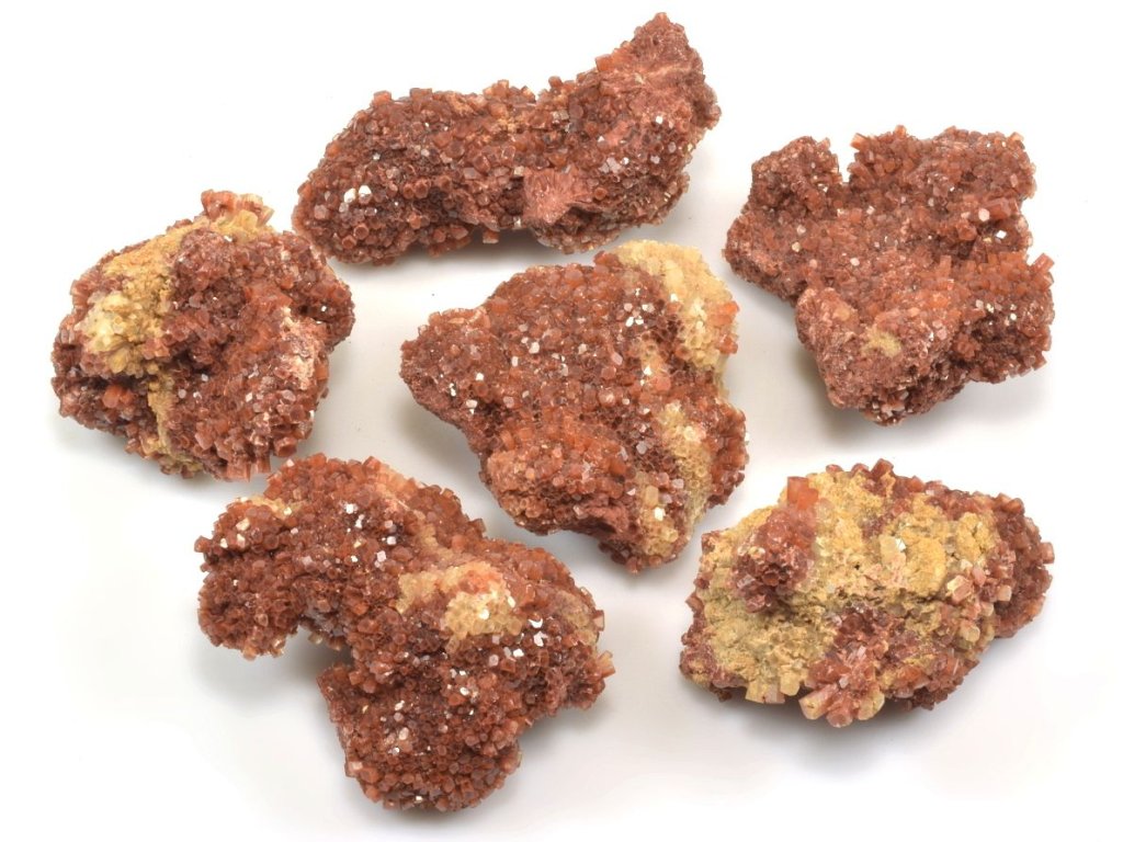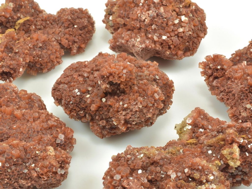 Každý vzorek nabízeného aragonitu obsahuje desítky až stovky dokonale vyvinutých krystalů v odstínech červenohnědé barvy. Jedná se o typické zástupce aragonitu z Tazouta.