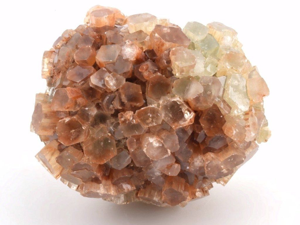 Drúza drobných sloupečkovitých krystalů aragonitu původem z Maroka. Vzorky z této lokality mají často červenohnědé zbarvení způsobené železnými inkluzemi. Na lokalitě se nacházejí také dvoubarevné, bílé, šedé nebo čiré srůsty.