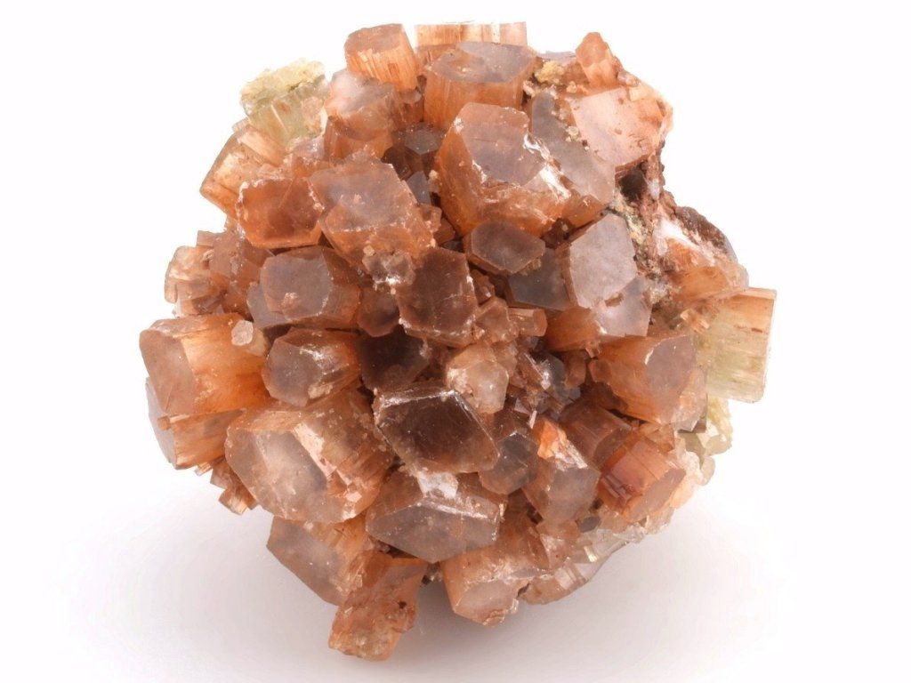 Drúza drobných sloupečkovitých krystalů aragonitu původem z Maroka. Vzorky z této lokality mají často červenohnědé zbarvení způsobené železnými inkluzemi. Na lokalitě se nacházejí také dvoubarevné, bílé, šedé nebo čiré srůsty.