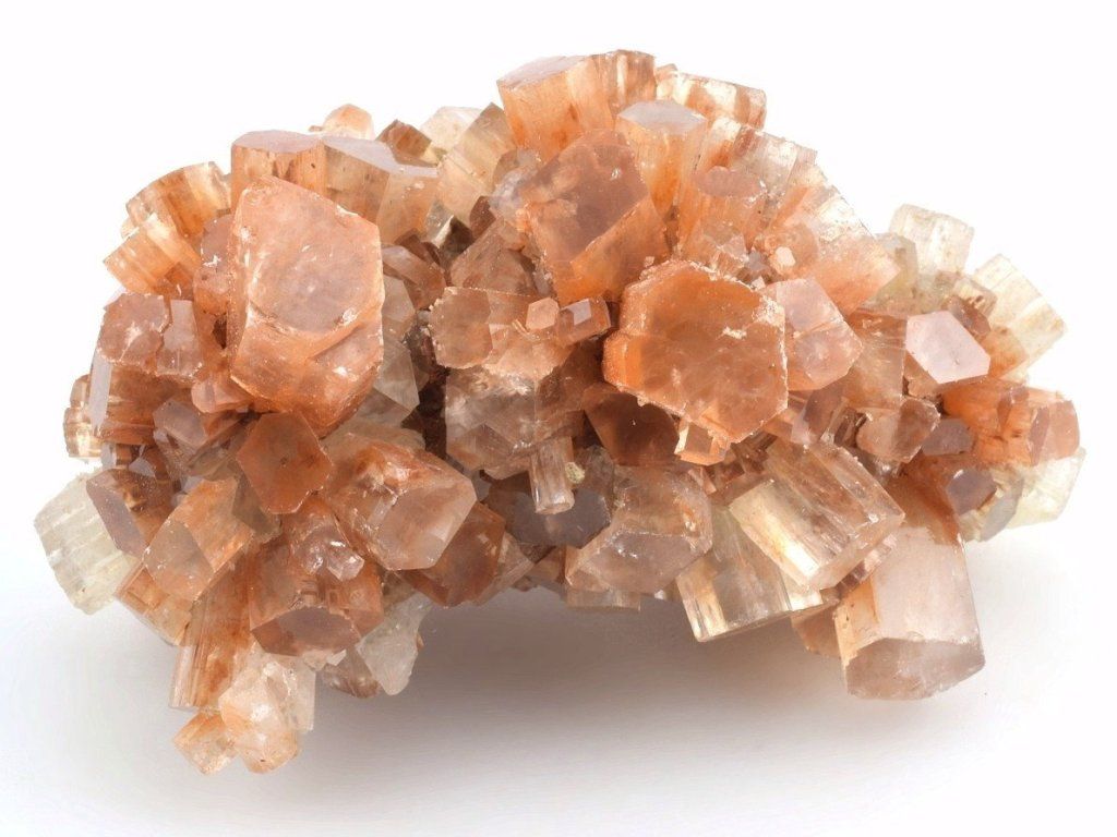 Drúza drobných sloupečkovitých krystalů aragonitu původem z Maroka. Vzorky z této lokality mají často červenohnědé zbarvení způsobené železnými inkluzemi. Na lokalitě se nacházejí také dvoubarevné, bílé, šedé nebo čiré srůsty.