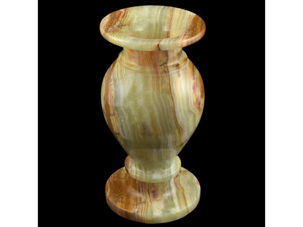 Dekorativní váza je vyrobena v Pákistánu z kvalitního aragonit-onyxového mramoru (onyx marble). Každý kus je pečlivě vyleštěn, aby vynikla přirozená kresba kamene a jeho jemný lesk.