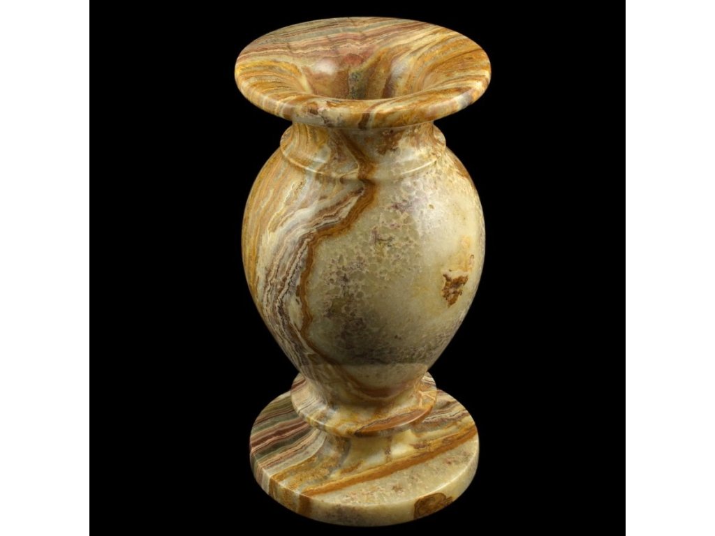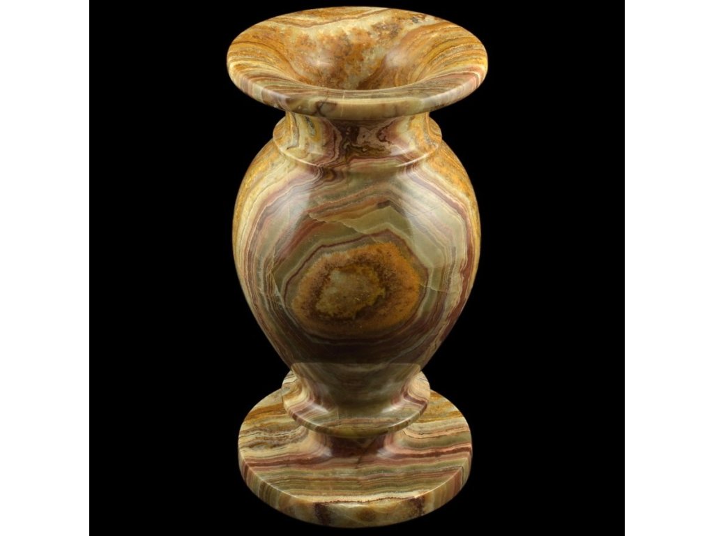 Každá váza je naprostý originál, protože přírodní vrstvy aragonit-onyxu nelze zopakovat.