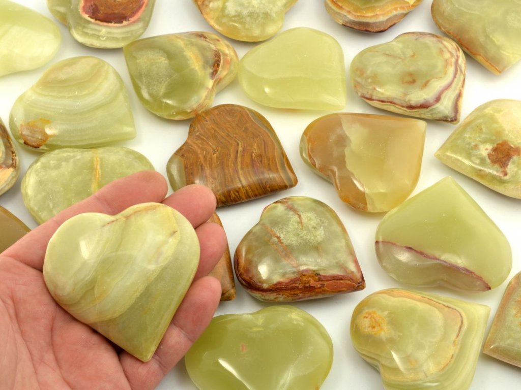 Srdce jsou vybroušená z pákistánského aragonit - onyxu.