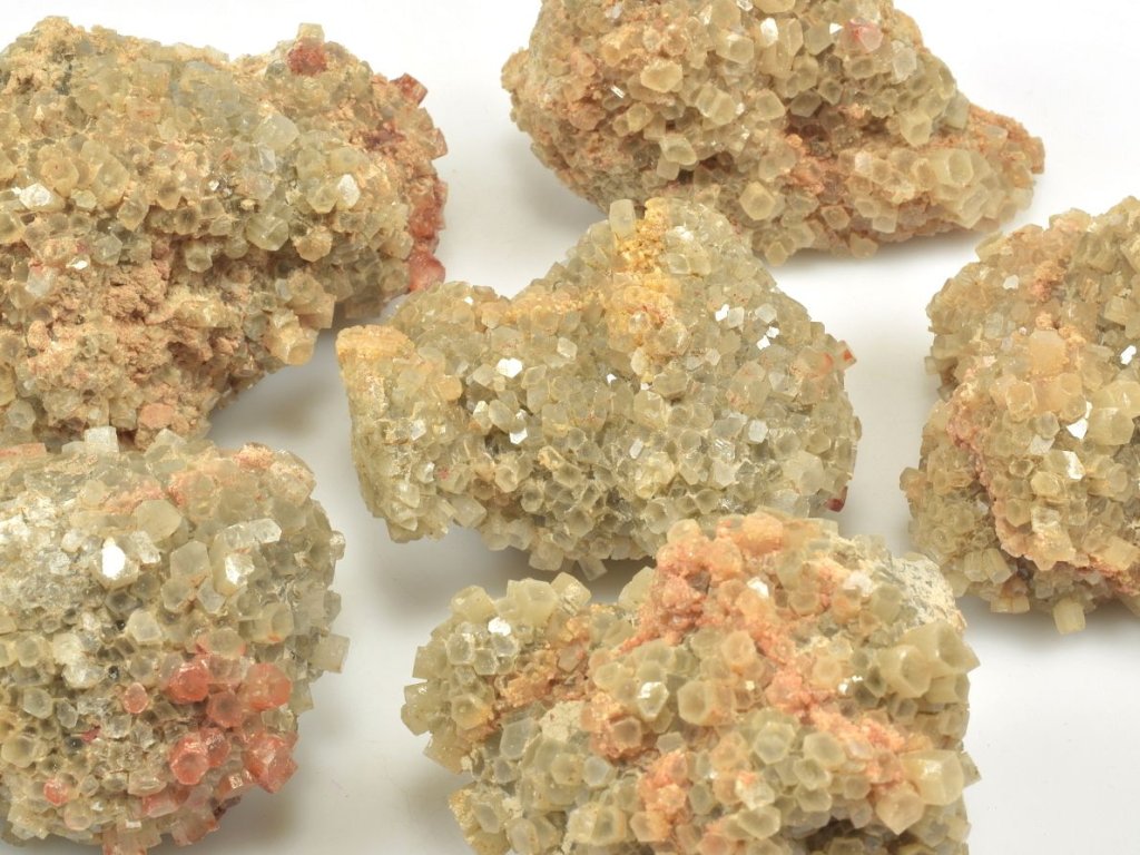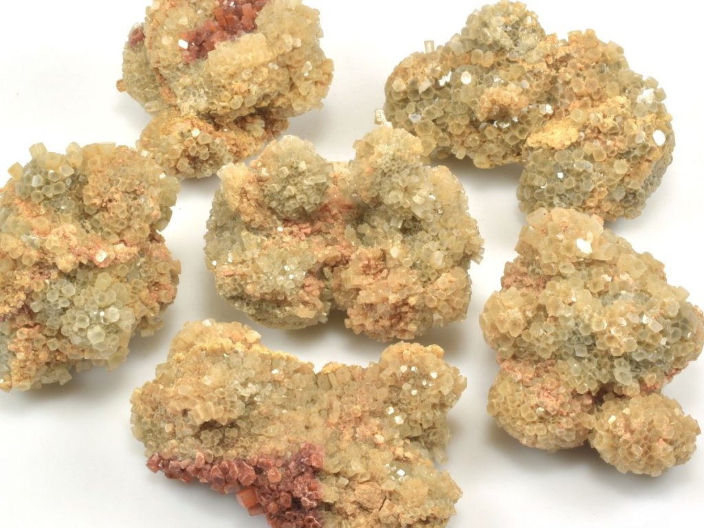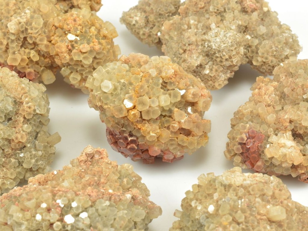Světlé drúzy aragonitových krystalů z Maroka představují velmi atraktivní ukázky typického aragonitu z lokality Tazouta. Vzorky tvoří srůsty mnoha sloupečkovitých pseudohexagonálních krystalů. Aragonit v této nabídce má krémovou až téměř šedobílou barvu a vyznačuje se skelným nebo hedvábným leskem.