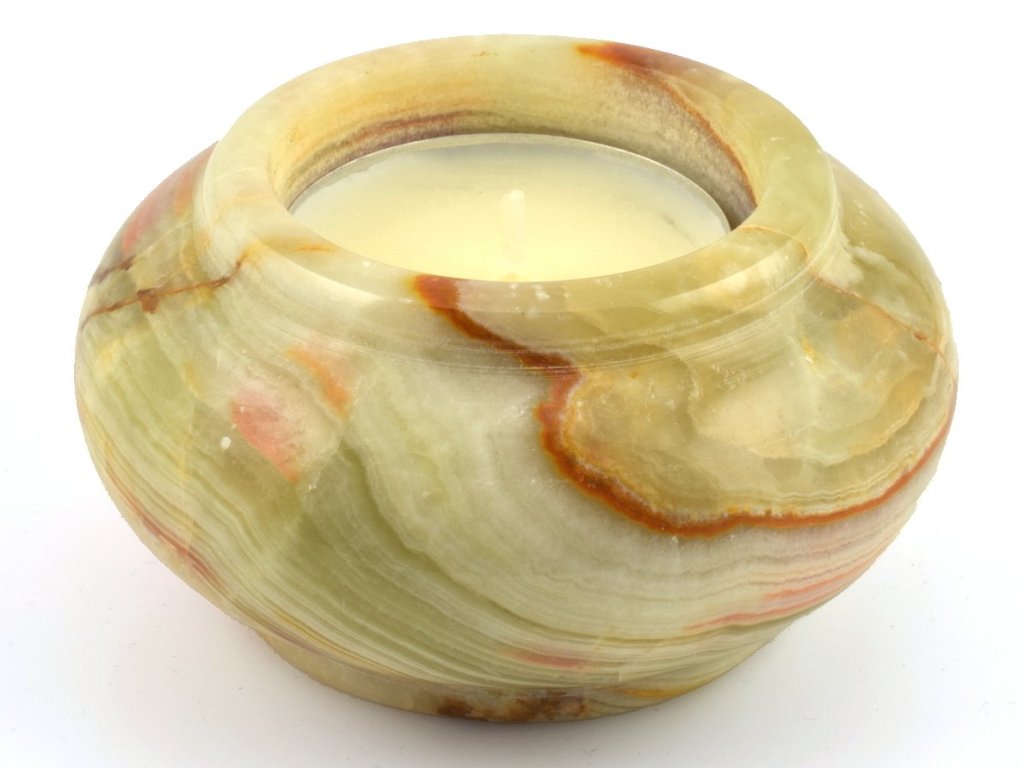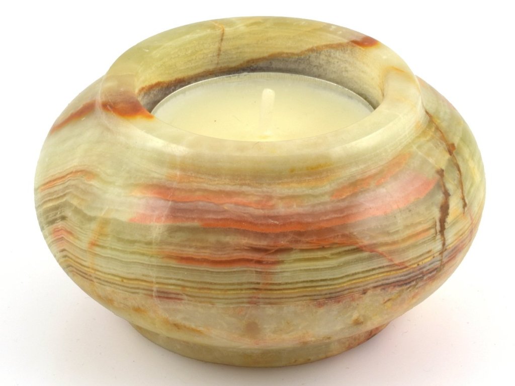 Aragonitový svícen na čajovou svíčku.
