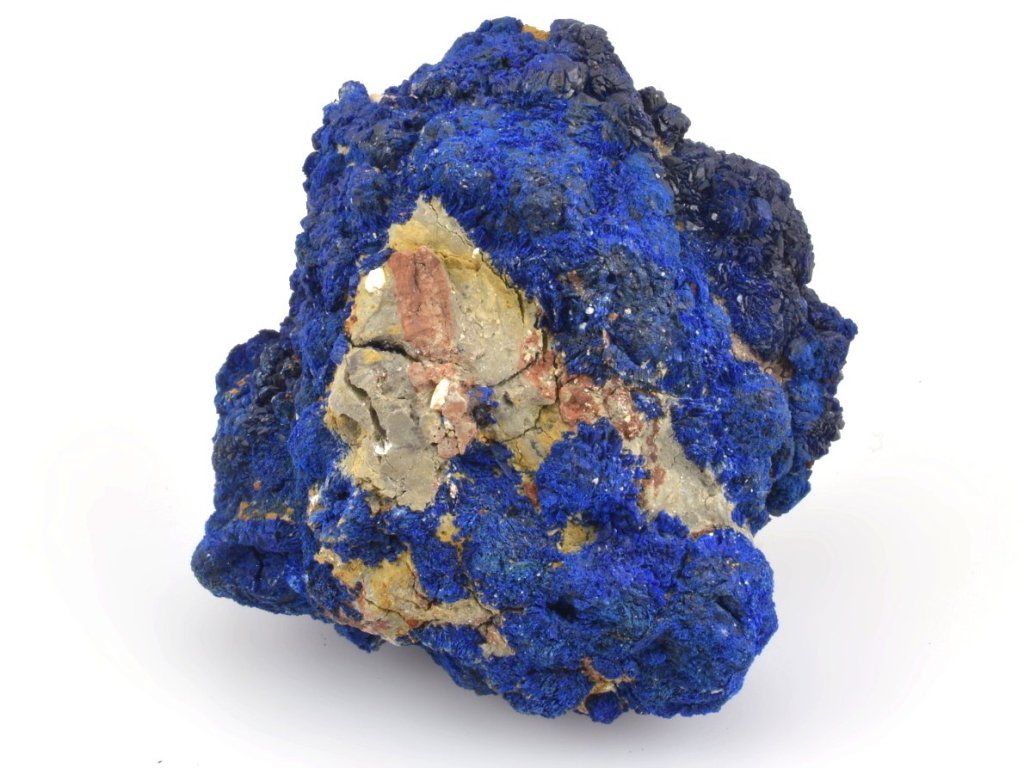 Sbírkový azurit z dolu Bou Beker v Maroku. Zajímavý, křehký vzorek modrého azuritu na hornině. Se vzorkem je nutné zacházet velmi opatrně a vyvarovat se jakéhokoli tlaku či pádu. Krystaly azuritu i samotná hornina jsou křehké.
