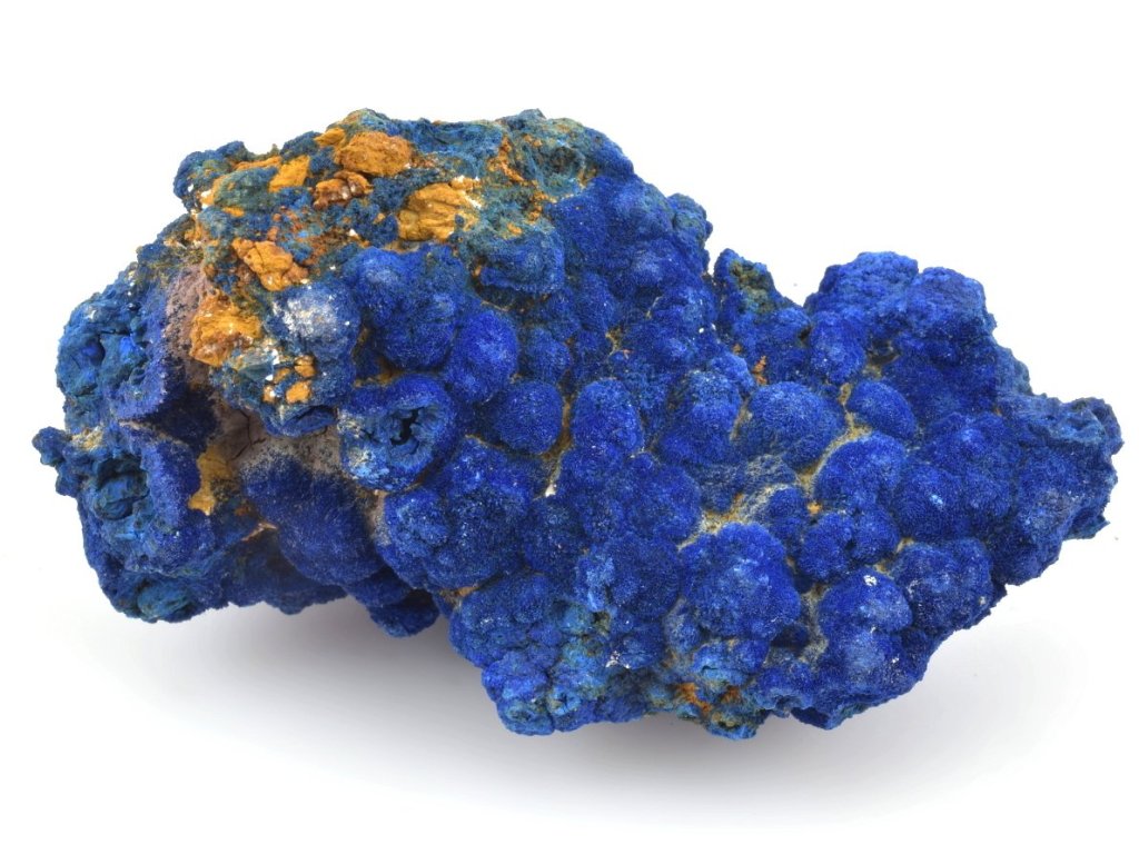 Sbírkový azurit z dolu Bou Beker v Maroku. Zajímavý, křehký vzorek modrého azuritu na hornině. Se vzorkem je nutné zacházet velmi opatrně a vyvarovat se jakéhokoli tlaku či pádu. Krystaly azuritu i samotná hornina jsou křehké.
