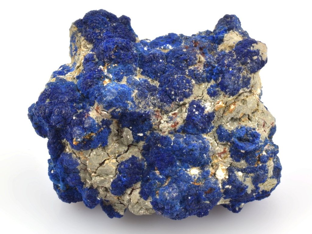 Sbírkový azurit z dolu Bou Beker v Maroku. Zajímavý, křehký vzorek modrého azuritu na hornině. Se vzorkem je nutné zacházet velmi opatrně a vyvarovat se jakéhokoli tlaku či pádu. Krystaly azuritu i samotná hornina jsou křehké.