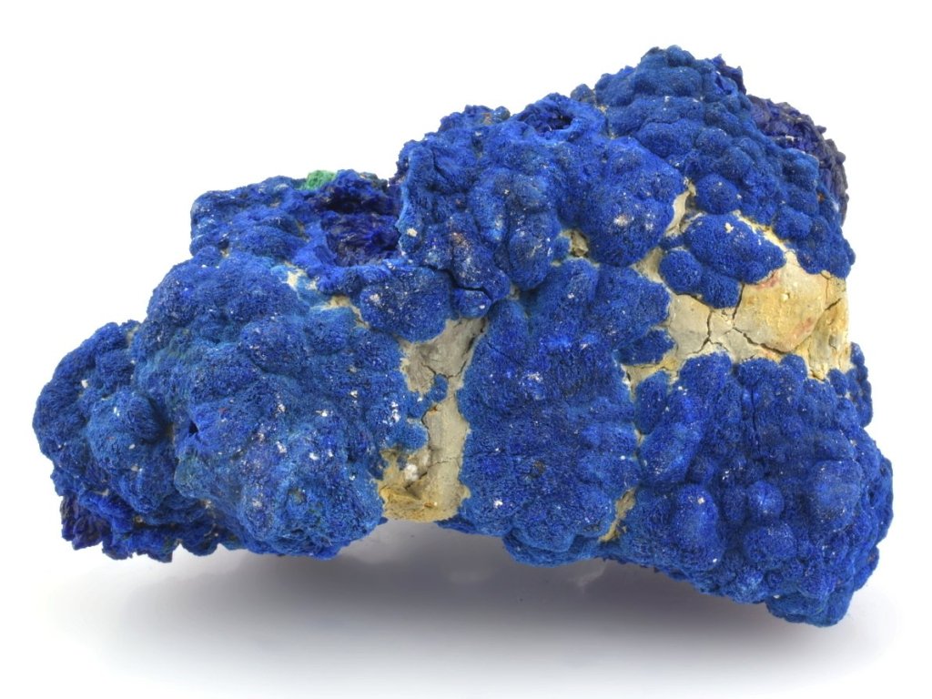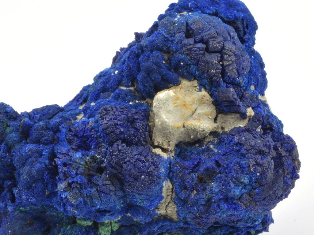 Sbírkový azurit z dolu Bou Beker v Maroku. Zajímavý, křehký vzorek modrého azuritu na hornině. Se vzorkem je nutné zacházet velmi opatrně a vyvarovat se jakéhokoli tlaku či pádu. Krystaly azuritu i samotná hornina jsou křehké.