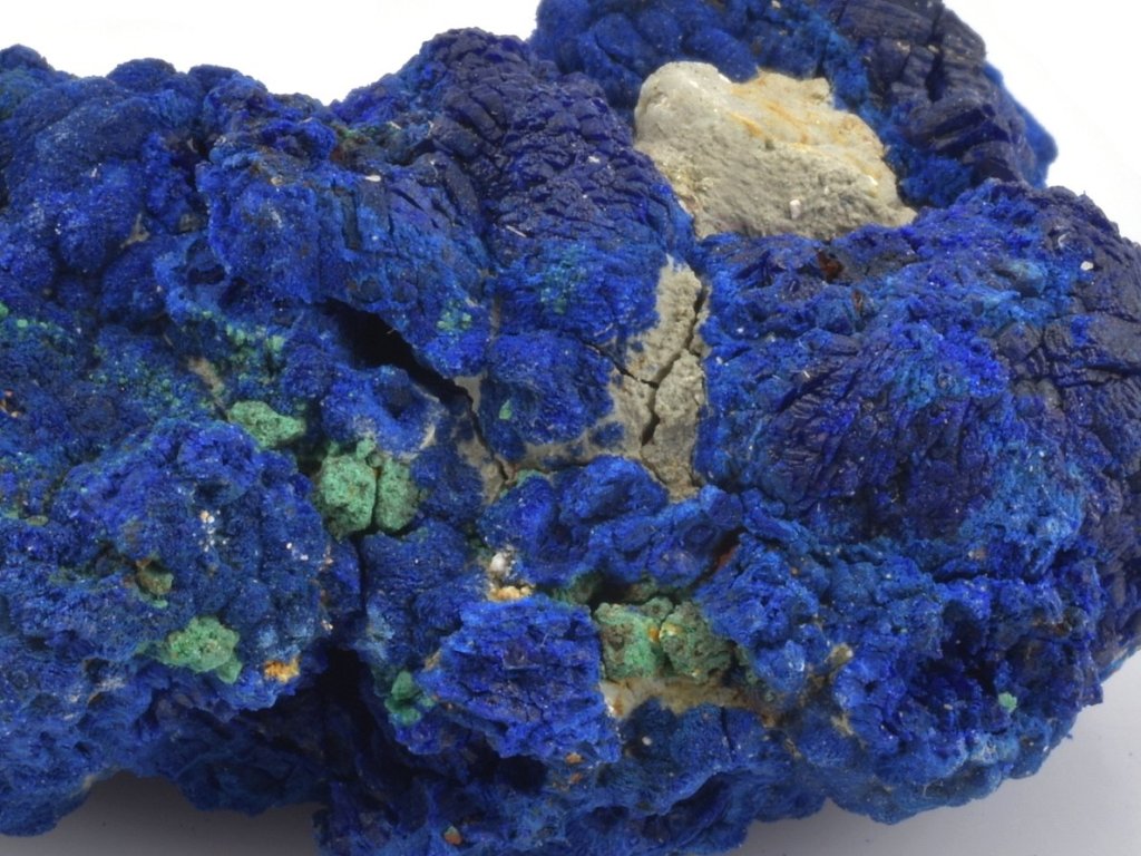 Typická barva azuritu je sytě modrá, přičemž tento minerál může mít odstíny od světle modré až po velmi tmavou, téměř černomodrou. Právě podle této výrazné barvy získal azurit své jméno – roku 1824 jej pojmenoval francouzský mineralog François Beudant. Název je odvozen z perského slova „lazhward“, které znamená „modrý“. Azurit vzniká jako produkt oxidace v tzv. oxidačních zónách měděných ložisek. Azurit má tvrdost 3,5–4, skelný lesk a světle modrý vryp.