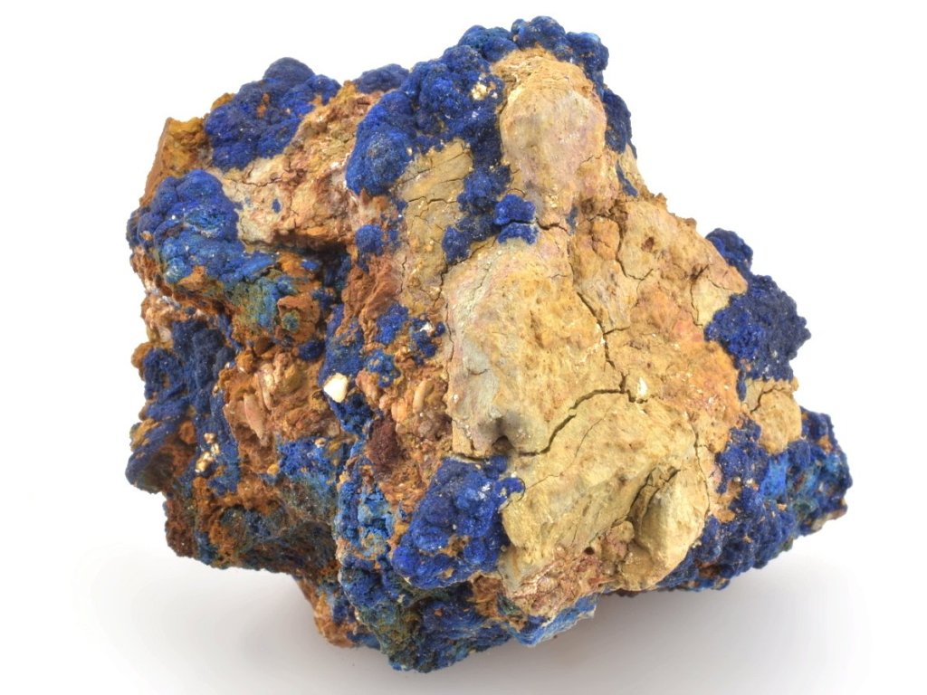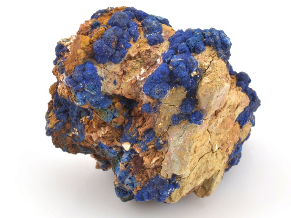 Sbírkový azurit z dolu Bou Beker v Maroku. Zajímavý, křehký vzorek modrého azuritu na hornině. Se vzorkem je nutné zacházet velmi opatrně a vyvarovat se jakéhokoli tlaku či pádu. Krystaly azuritu i samotná hornina jsou křehké.
