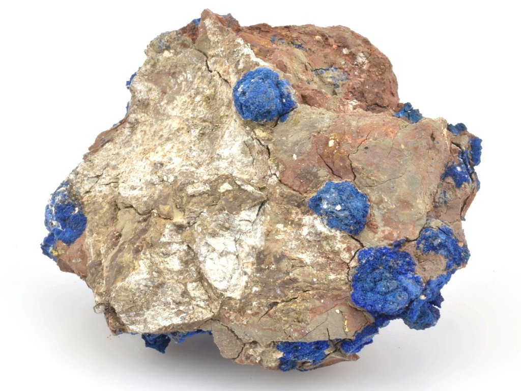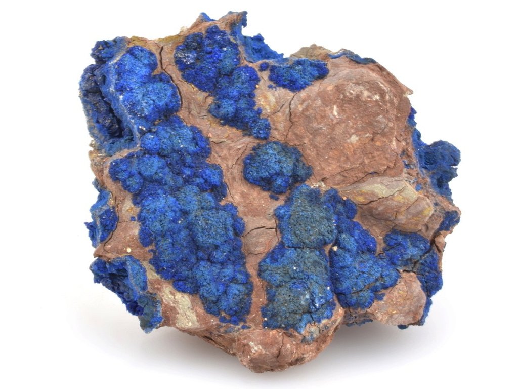 Sbírkový azurit z dolu Bou Beker v Maroku. Zajímavý, křehký vzorek modrého azuritu na hornině. Se vzorkem je nutné zacházet velmi opatrně a vyvarovat se jakéhokoli tlaku či pádu. Krystaly azuritu i samotná hornina jsou křehké.