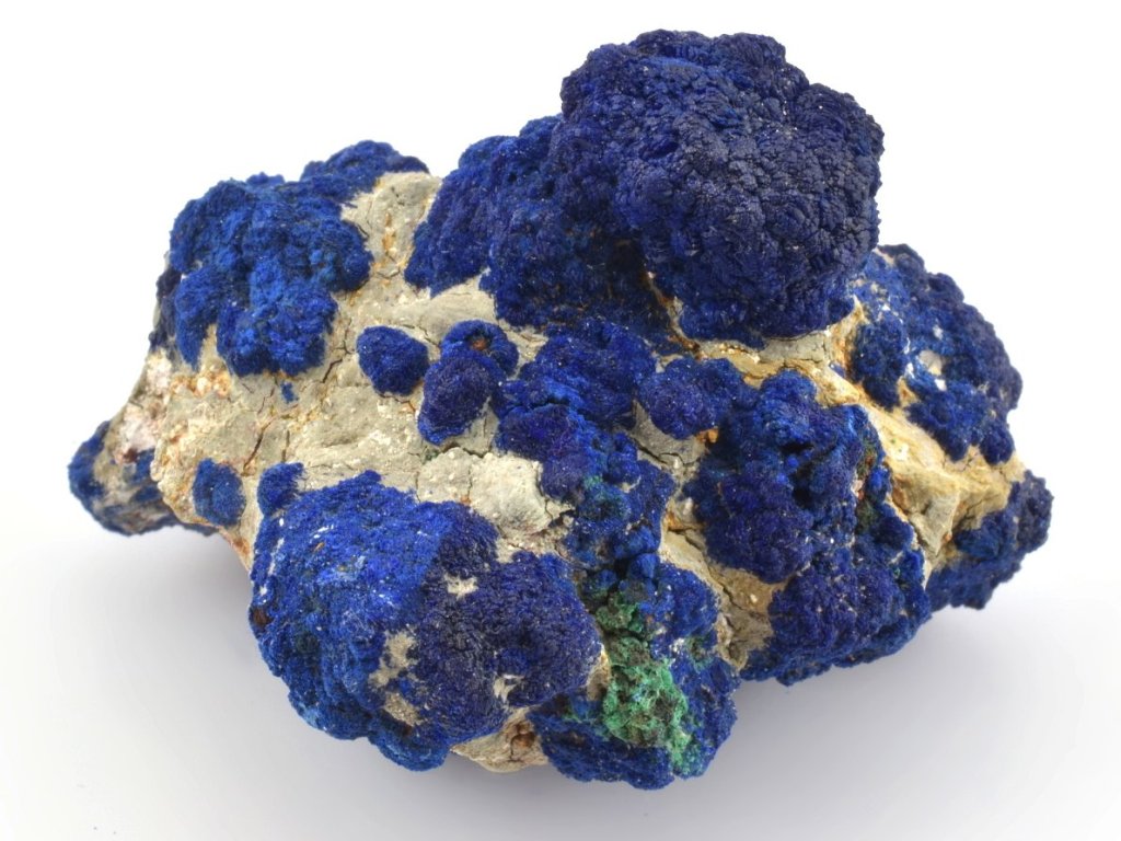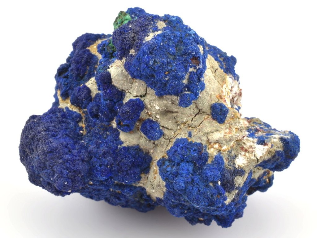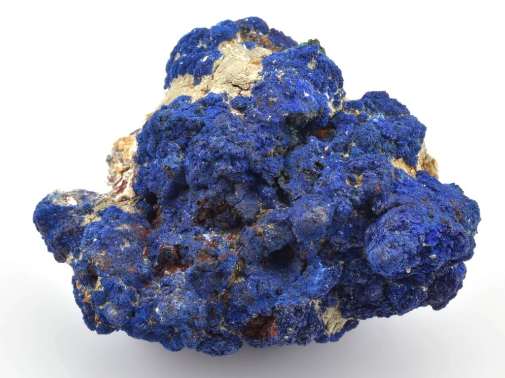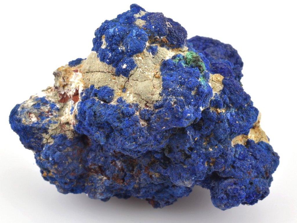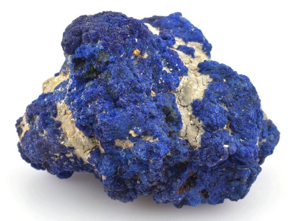 Typická barva azuritu je sytě modrá, přičemž tento minerál může mít odstíny od světle modré až po velmi tmavou, téměř černomodrou. Právě podle této výrazné barvy získal azurit své jméno – roku 1824 jej pojmenoval francouzský mineralog François Beudant. Název je odvozen z perského slova „lazhward“, které znamená „modrý“. Azurit vzniká jako produkt oxidace v tzv. oxidačních zónách měděných ložisek. Azurit má tvrdost 3,5–4, skelný lesk a světle modrý vryp.