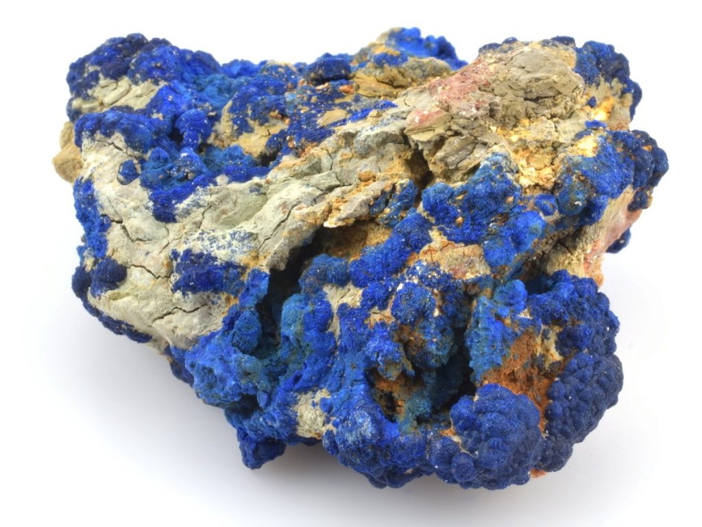 Typická barva azuritu je sytě modrá, přičemž tento minerál může mít odstíny od světle modré až po velmi tmavou, téměř černomodrou. Právě podle této výrazné barvy získal azurit své jméno – roku 1824 jej pojmenoval francouzský mineralog François Beudant. Název je odvozen z perského slova „lazhward“, které znamená „modrý“. Azurit vzniká jako produkt oxidace v tzv. oxidačních zónách měděných ložisek. Azurit má tvrdost 3,5–4, skelný lesk a světle modrý vryp.