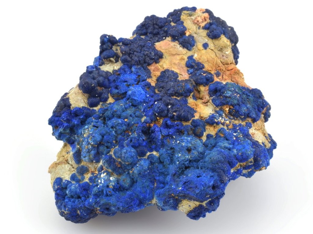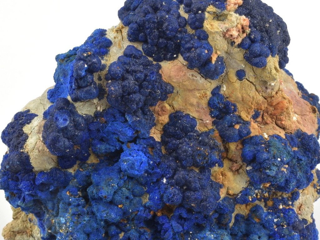 Sbírkový azurit z dolu Bou Beker v Maroku. Zajímavý, křehký vzorek modrého azuritu na hornině. Se vzorkem je nutné zacházet velmi opatrně a vyvarovat se jakéhokoli tlaku či pádu. Krystaly azuritu i samotná hornina jsou křehké.