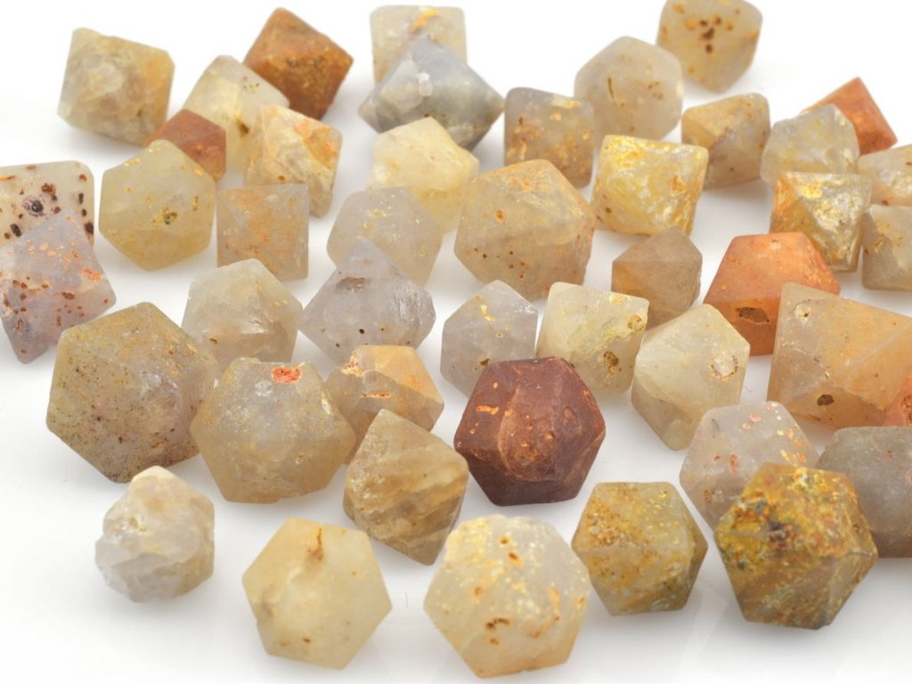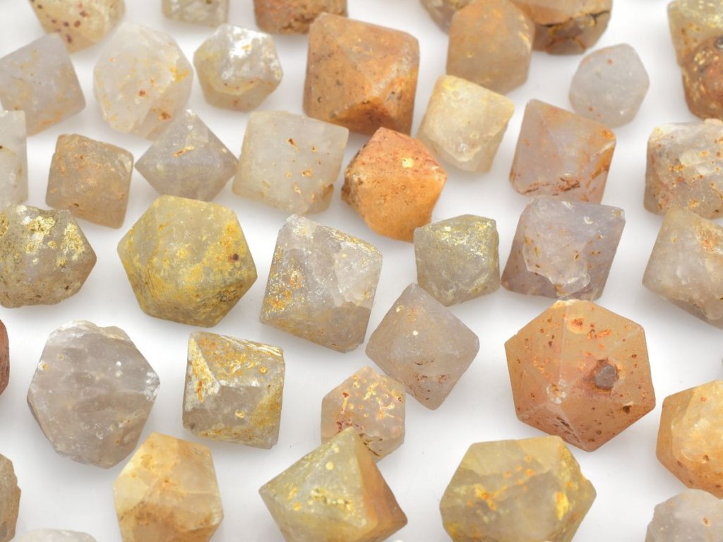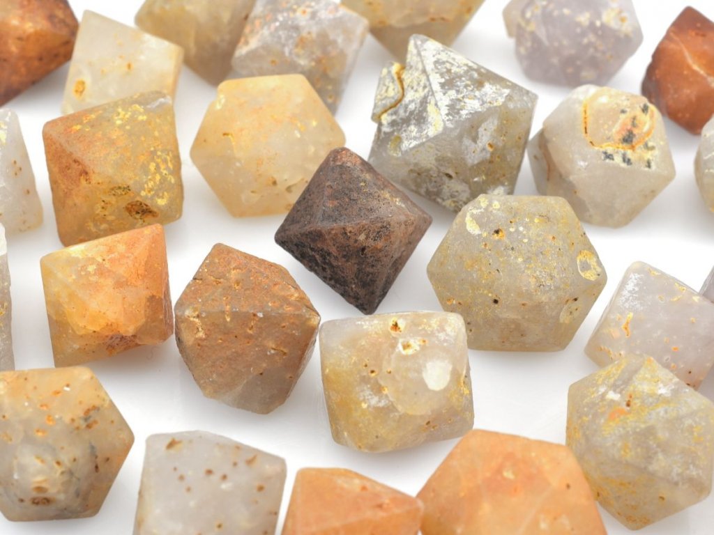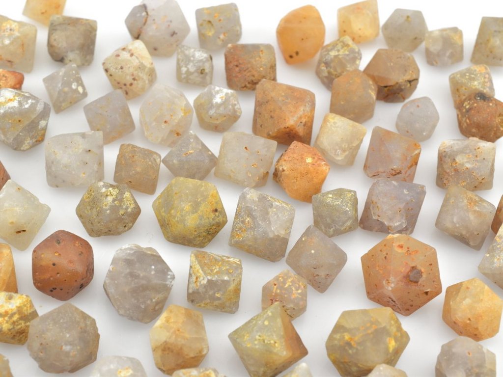 Hexagonální dipyramidální krystaly alfa křemene po beta-křemenu (Beta Quartz) z Indonésie. Cena za 1 balení = 5 ks.