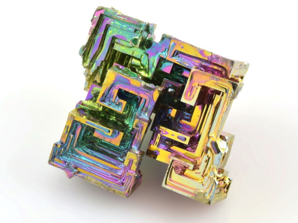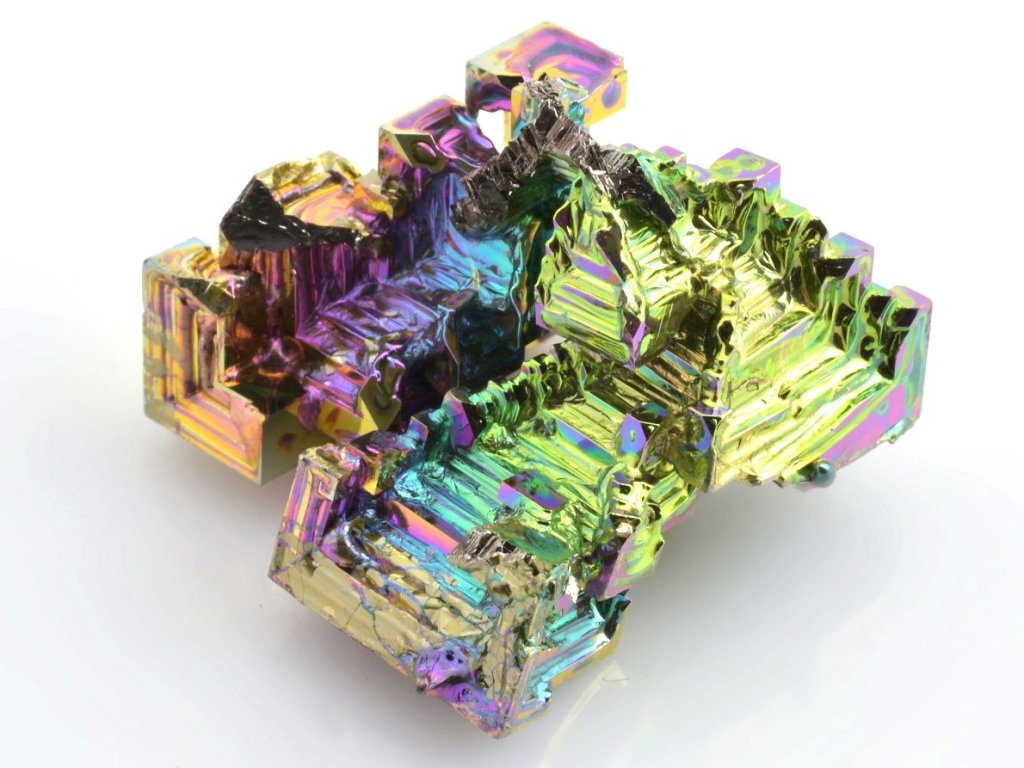 Krystal má vysokou iridescenci (hru duhovými barvami) viz foto. Jedná se o bismut (bizmut), vzácný a těžký kovový prvek o čistotě 99,99% v krásných barvách. Mezi sběrateli je oblíbený zejména díky vysoké iridescenci, kdy se na jeho zoxidovaném povrchu vytvářejí efektní duhové odstíny.