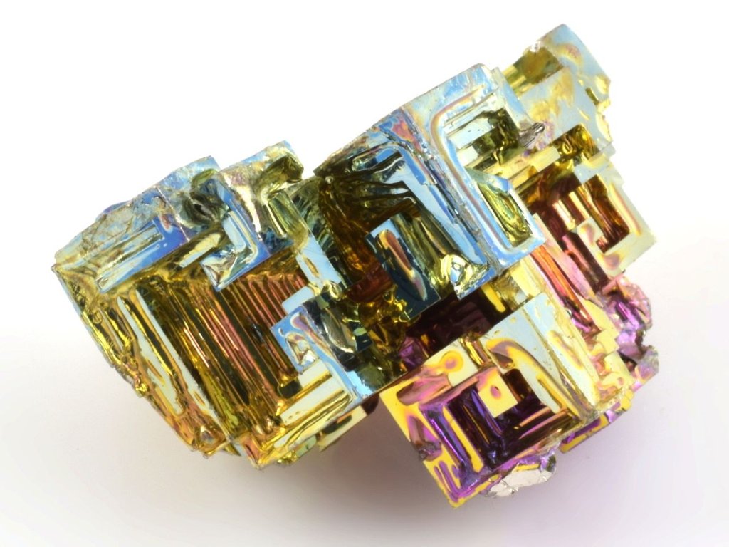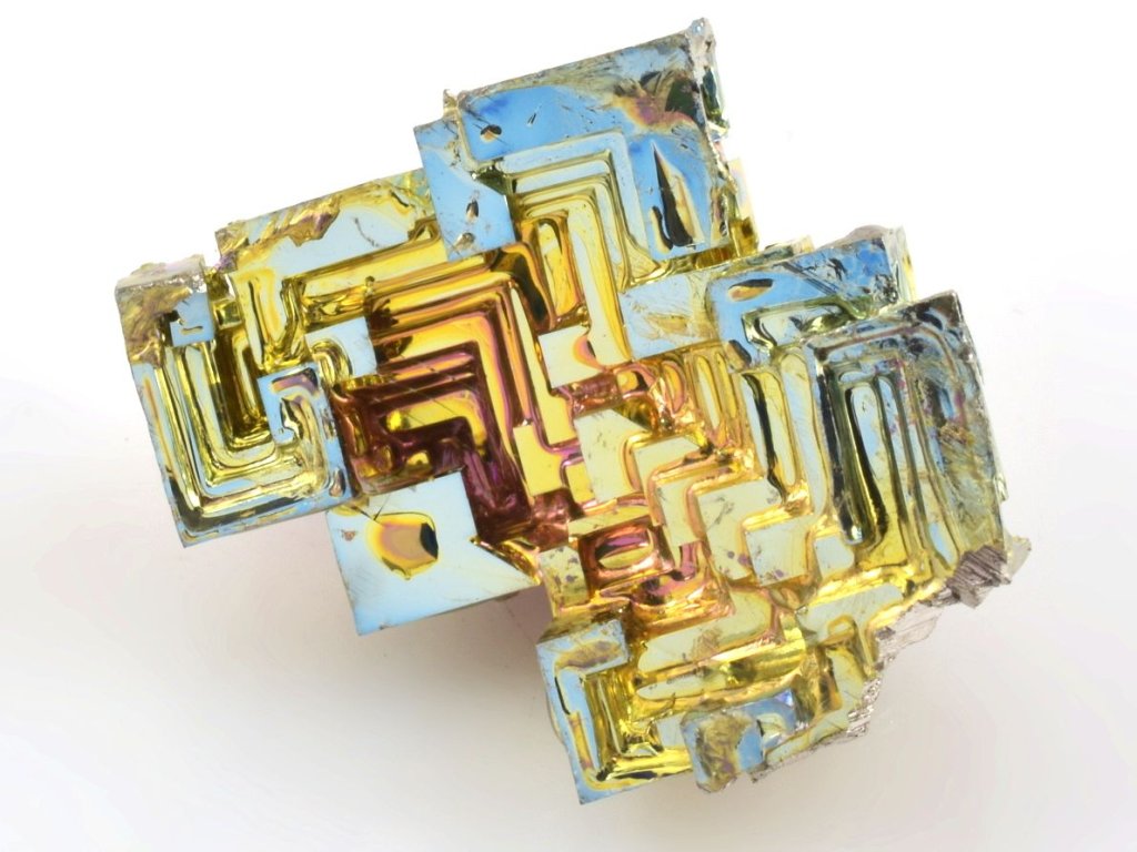 Krystal má vysokou iridescenci (hru duhovými barvami) viz foto. Jedná se o bismut (bizmut), vzácný a těžký kovový prvek o čistotě 99,99% v krásných barvách. Mezi sběrateli je oblíbený zejména díky vysoké iridescenci, kdy se na jeho zoxidovaném povrchu vytvářejí efektní duhové odstíny.
