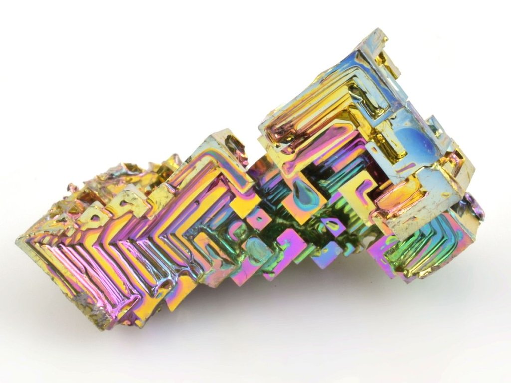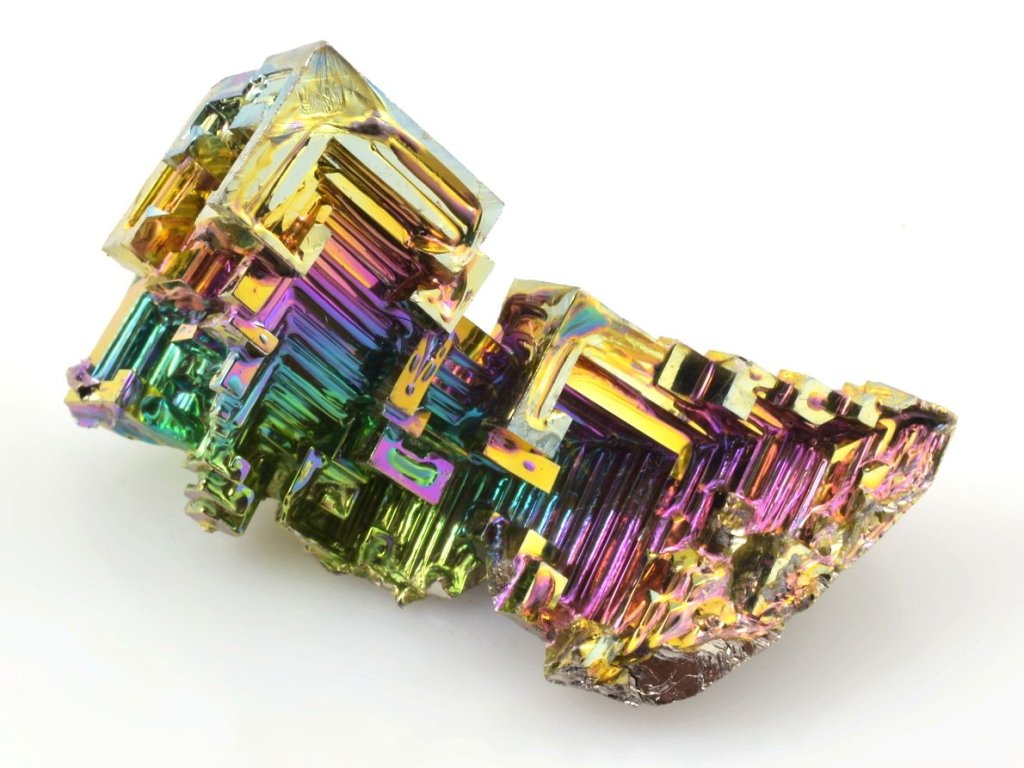 Krystal má vysokou iridescenci (hru duhovými barvami) viz foto. Jedná se o bismut (bizmut), vzácný a těžký kovový prvek o čistotě 99,99% v krásných barvách. Mezi sběrateli je oblíbený zejména díky vysoké iridescenci, kdy se na jeho zoxidovaném povrchu vytvářejí efektní duhové odstíny.