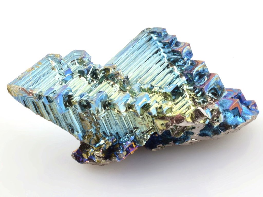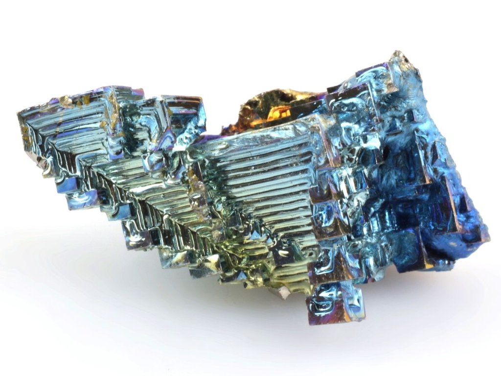 Krystal má vysokou iridescenci (hru duhovými barvami) viz foto. Jedná se o bismut (bizmut), vzácný a těžký kovový prvek o čistotě 99,99% v krásných barvách. Mezi sběrateli je oblíbený zejména díky vysoké iridescenci, kdy se na jeho zoxidovaném povrchu vytvářejí efektní duhové odstíny.