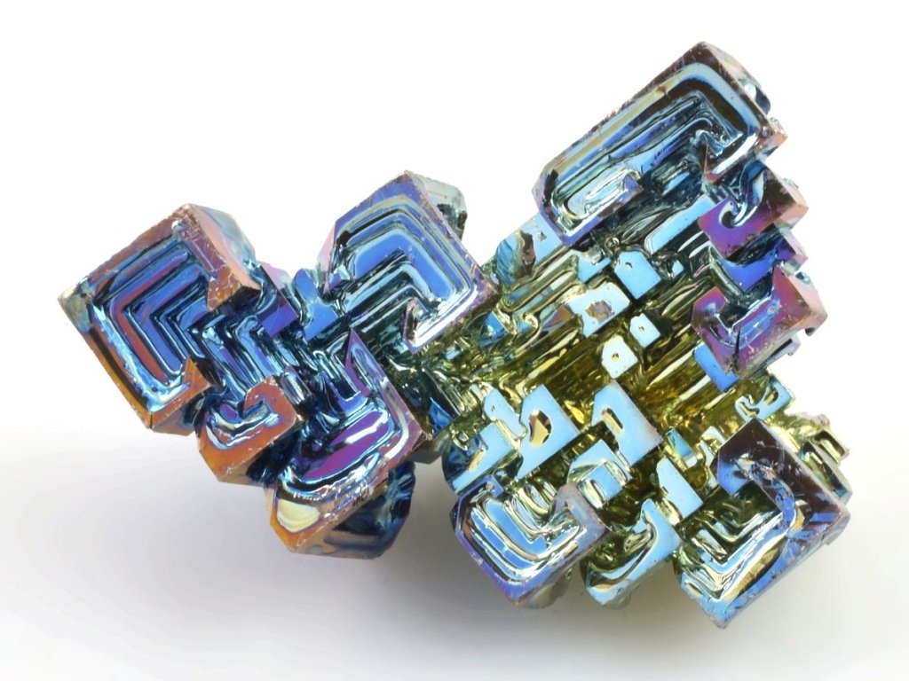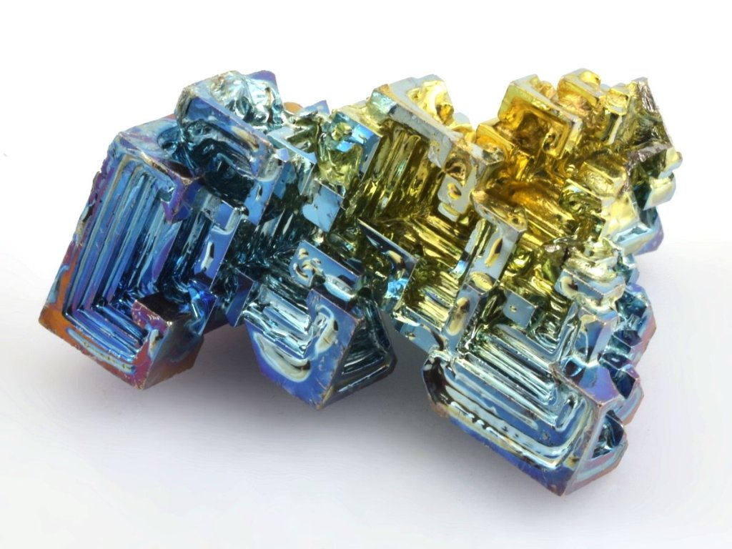 Krystal má vysokou iridescenci (hru duhovými barvami) viz foto. Jedná se o bismut (bizmut), vzácný a těžký kovový prvek o čistotě 99,99% v krásných barvách. Mezi sběrateli je oblíbený zejména díky vysoké iridescenci, kdy se na jeho zoxidovaném povrchu vytvářejí efektní duhové odstíny.