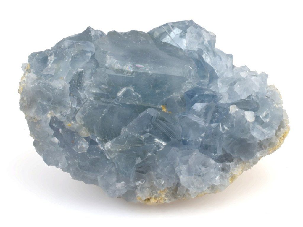 Pravý přírodní celestin – drúza světle modrých, lesklých krystalů celestinu, původem z Madagaskaru.