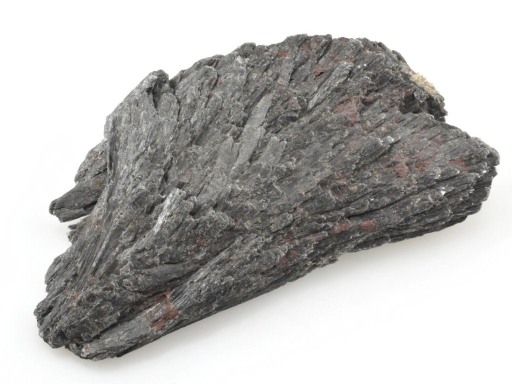 Sbírkový kus černého kyanitu pocházející z proslulé lokality. Tento estetický minerál tvoří vějířovitý shluk složený z desítek krystalů. Krystaly se vyznačují jemným voskovým leskem. Vzorek kyanitu je oboustranný. Své charakteristické černé zbarvení získává kyanit díky množství jemných inkluzí grafitu. V Brazílii se mu přezdívá „Vassoura de Bruxa“ – čarodějnické koště.