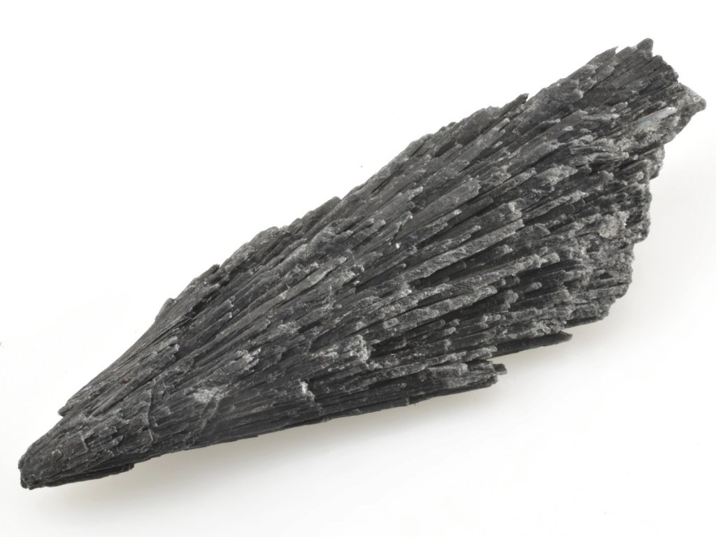 Sbírkový kus černého kyanitu pocházející z proslulé lokality. Tento estetický minerál tvoří vějířovitý shluk složený z desítek krystalů. Krystaly se vyznačují jemným voskovým leskem. Vzorek kyanitu je oboustranný. Své charakteristické černé zbarvení získává kyanit díky množství jemných inkluzí grafitu. V Brazílii se mu přezdívá „Vassoura de Bruxa“ – čarodějnické koště.