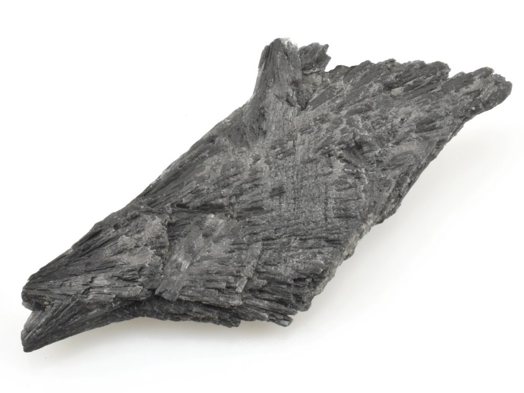 Sbírkový kus černého kyanitu pocházející z proslulé lokality. Tento estetický minerál tvoří vějířovitý shluk složený z desítek krystalů. Krystaly se vyznačují jemným voskovým leskem. Vzorek kyanitu je oboustranný. Své charakteristické černé zbarvení získává kyanit díky množství jemných inkluzí grafitu. V Brazílii se mu přezdívá „Vassoura de Bruxa“ – čarodějnické koště.