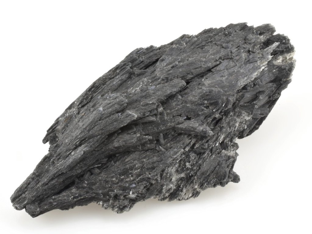Sbírkový kus černého kyanitu pocházející z proslulé lokality. Tento estetický minerál tvoří vějířovitý shluk složený z desítek krystalů. Krystaly se vyznačují jemným voskovým leskem. Vzorek kyanitu je oboustranný. Své charakteristické černé zbarvení získává kyanit díky množství jemných inkluzí grafitu. V Brazílii se mu přezdívá „Vassoura de Bruxa“ – čarodějnické koště.