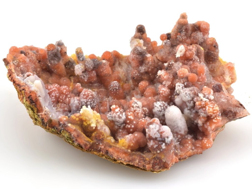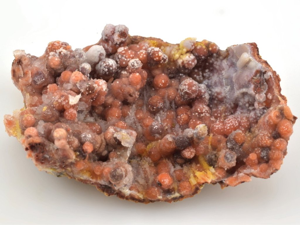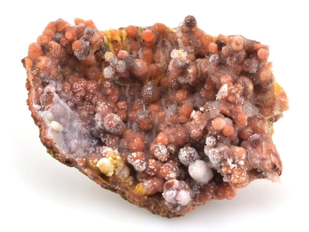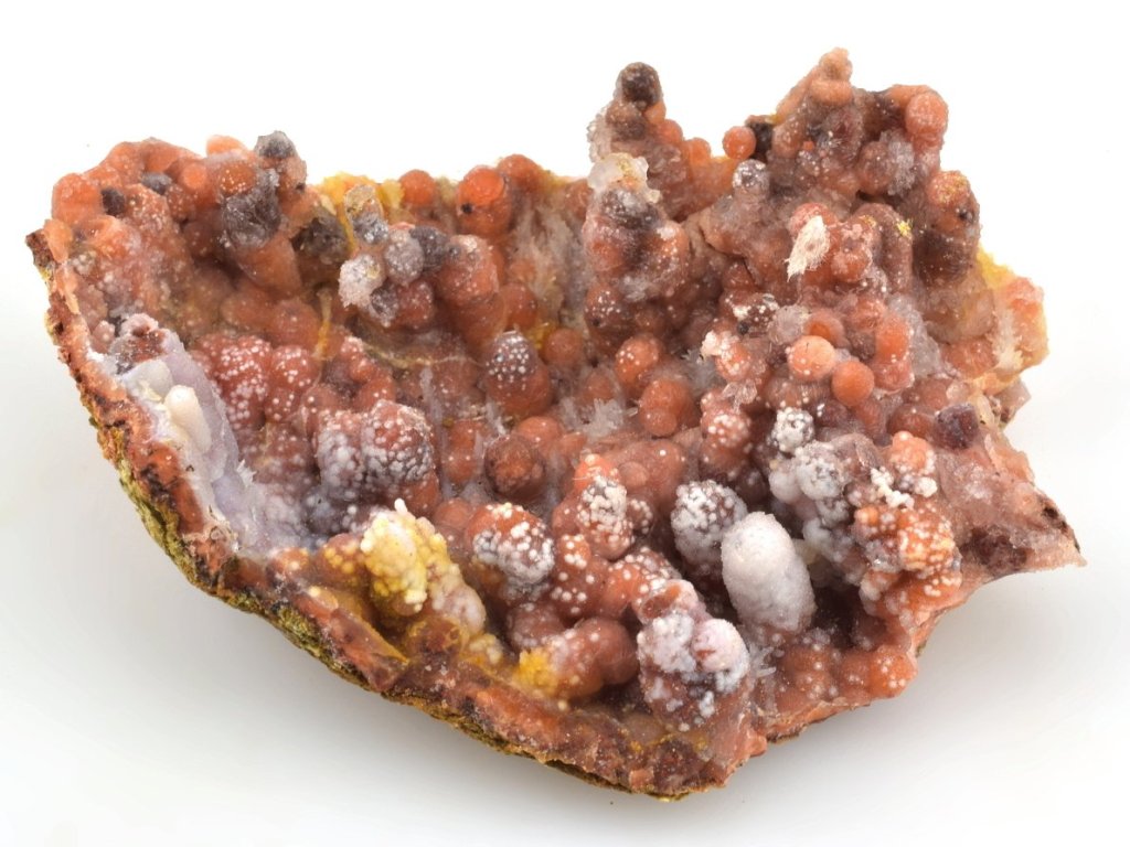 Zbarvení těchto achátových geod je pro tuto oblast velmi charakteristické – typický je růžový vnější okraj a načervenalé až hnědočervené odstíny způsobené přítomností hematitu. Vnější lem dutin bývá často tvořen růžovým opálem a na chalcedonu uvnitř se místy vykrystalizují jemné krystaly křišťálu. Vyskytují se zde také typické chalcedonové růže v růžových, načervenalých, fialových i šedobílých odstínech.