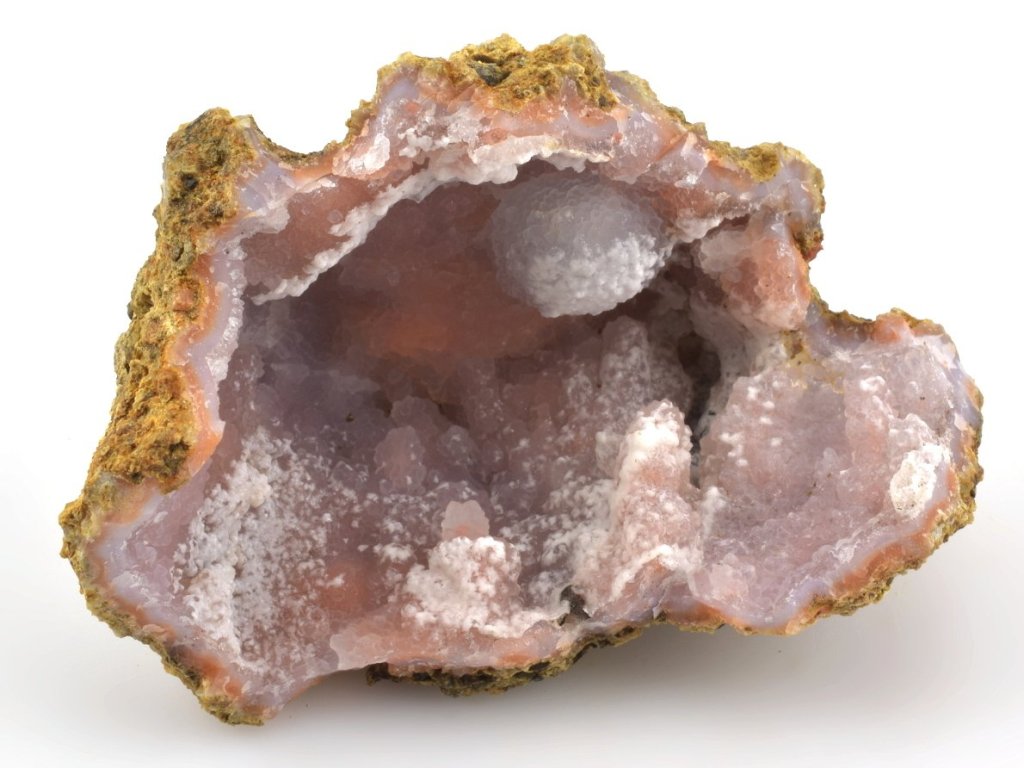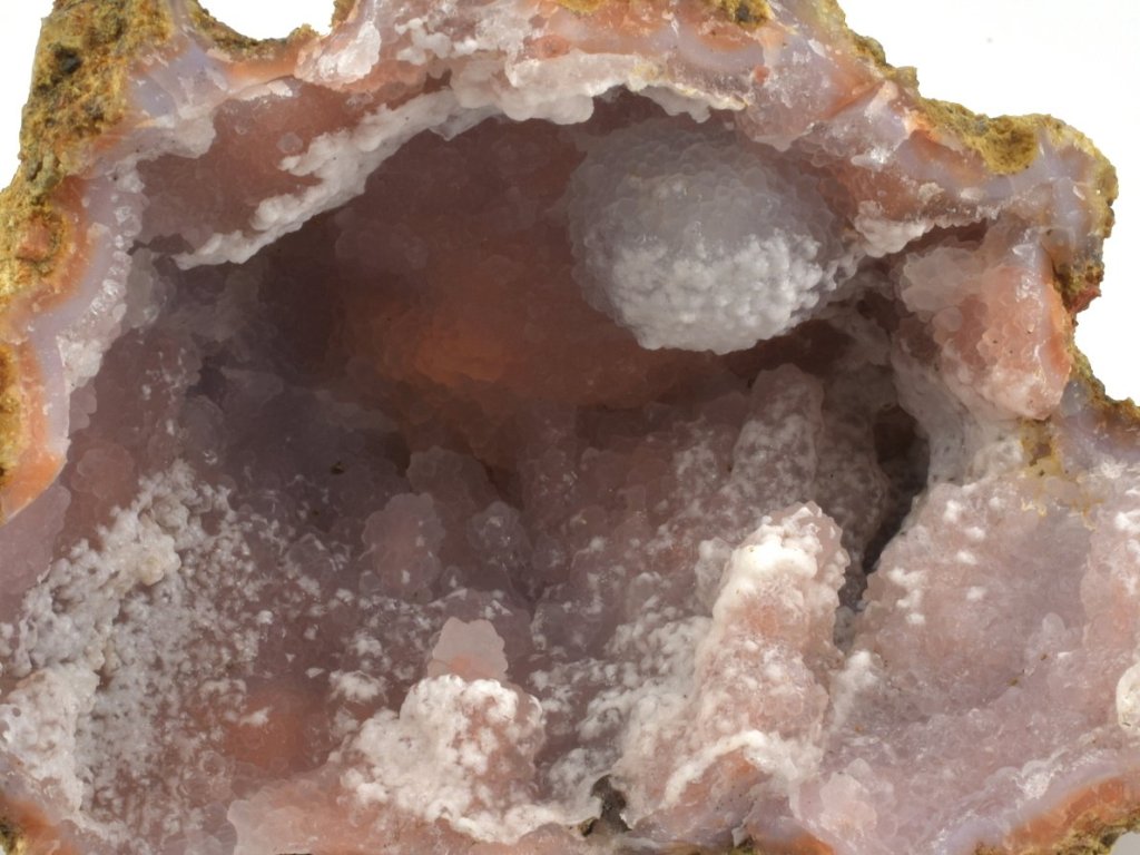 Zbarvení těchto achátových geod je pro tuto oblast velmi charakteristické – typický je růžový vnější okraj a načervenalé až hnědočervené odstíny způsobené přítomností hematitu. Vnější lem dutin bývá často tvořen růžovým opálem a na chalcedonu uvnitř se místy vykrystalizují jemné krystaly křišťálu. Vyskytují se zde také typické chalcedonové růže v růžových, načervenalých, fialových i šedobílých odstínech.
