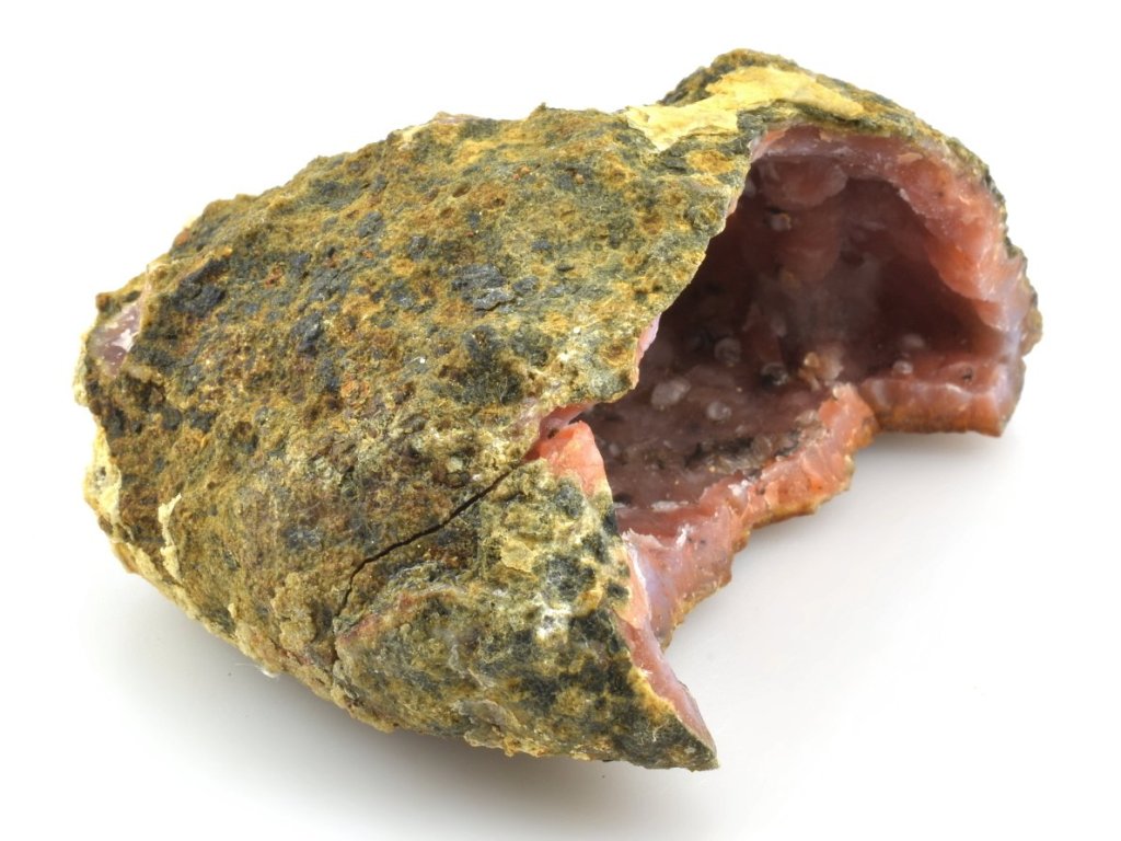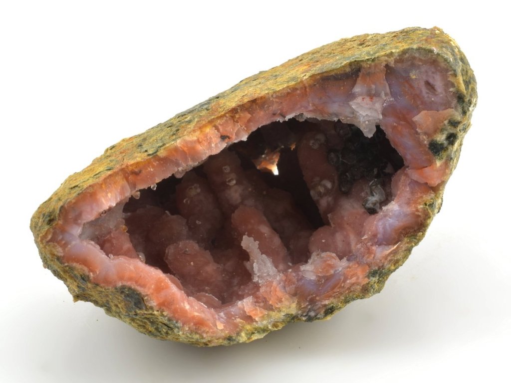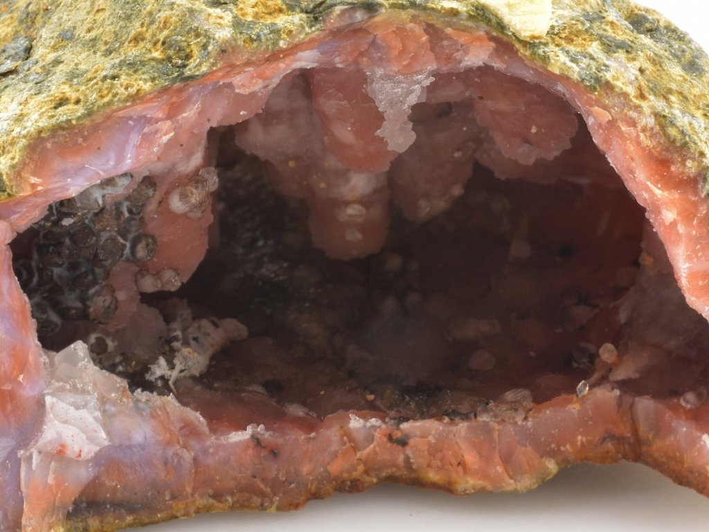 Zbarvení těchto achátových geod je pro tuto oblast velmi charakteristické – typický je růžový vnější okraj a načervenalé až hnědočervené odstíny způsobené přítomností hematitu. Vnější lem dutin bývá často tvořen růžovým opálem a na chalcedonu uvnitř se místy vykrystalizují jemné krystaly křišťálu. Vyskytují se zde také typické chalcedonové růže v růžových, načervenalých, fialových i šedobílých odstínech.