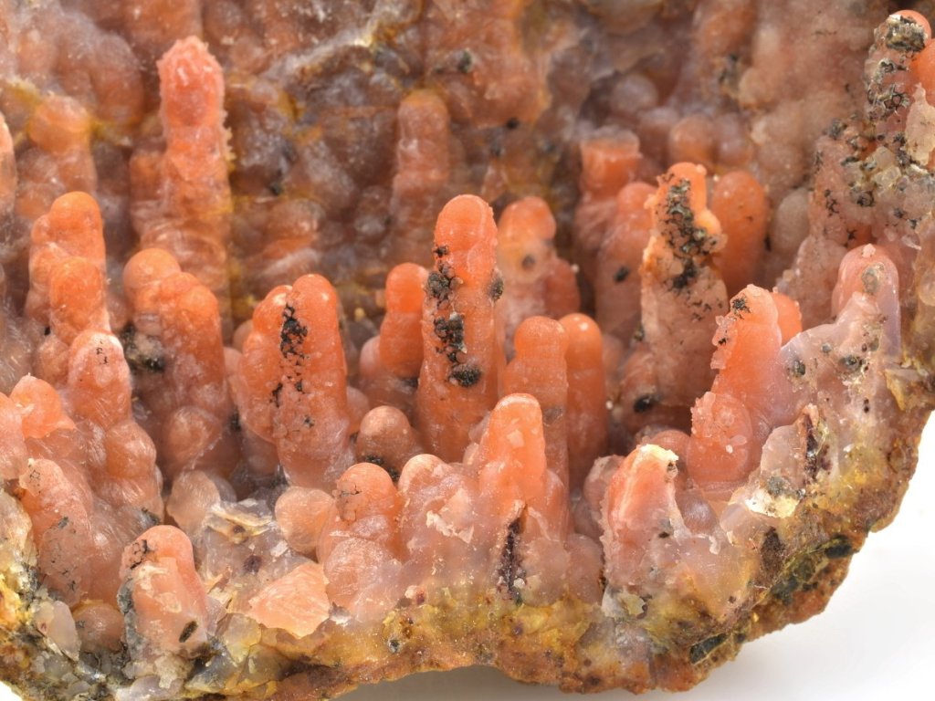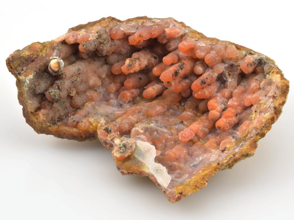 Zbarvení těchto achátových geod je pro tuto oblast velmi charakteristické – typický je růžový vnější okraj a načervenalé až hnědočervené odstíny způsobené přítomností hematitu. Vnější lem dutin bývá často tvořen růžovým opálem a na chalcedonu uvnitř se místy vykrystalizují jemné krystaly křišťálu. Vyskytují se zde také typické chalcedonové růže v růžových, načervenalých, fialových i šedobílých odstínech.