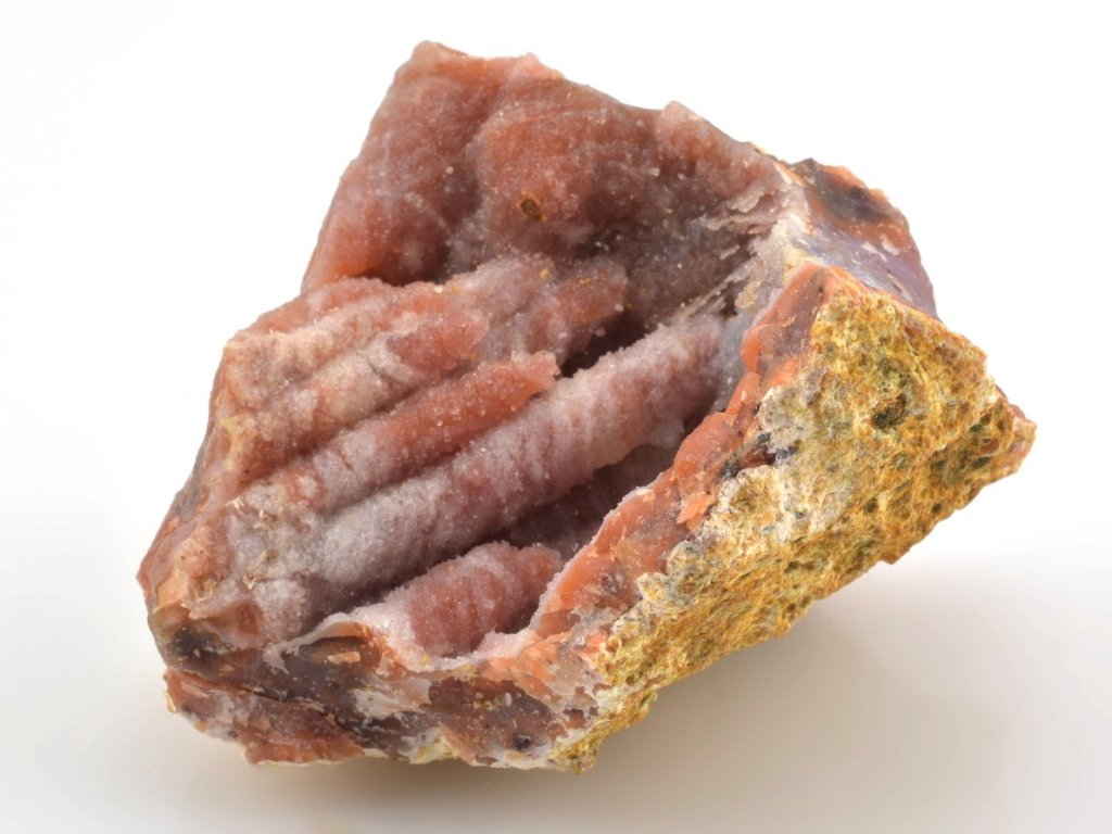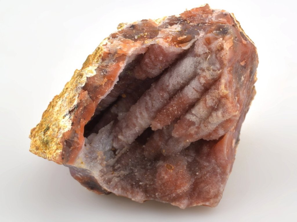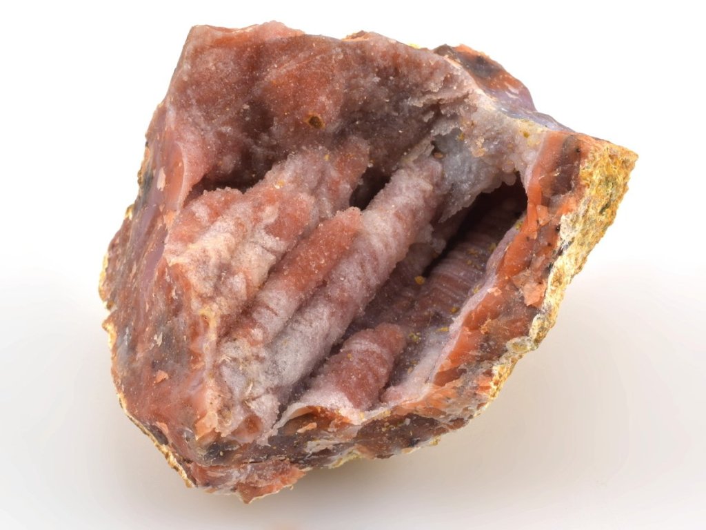 Zbarvení těchto achátových geod je pro tuto oblast velmi charakteristické – typický je růžový vnější okraj a načervenalé až hnědočervené odstíny způsobené přítomností hematitu. Vnější lem dutin bývá často tvořen růžovým opálem a na chalcedonu uvnitř se místy vykrystalizují jemné krystaly křišťálu. Vyskytují se zde také typické chalcedonové růže v růžových, načervenalých, fialových i šedobílých odstínech.