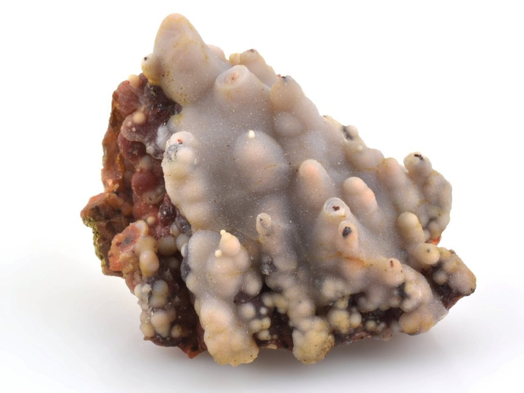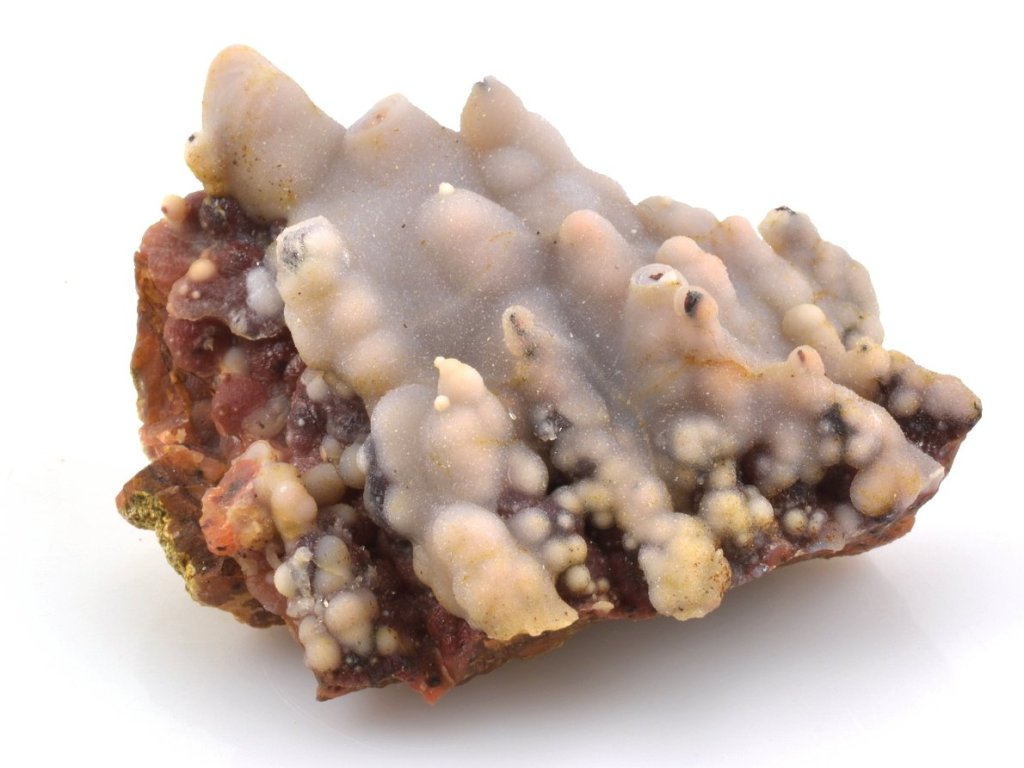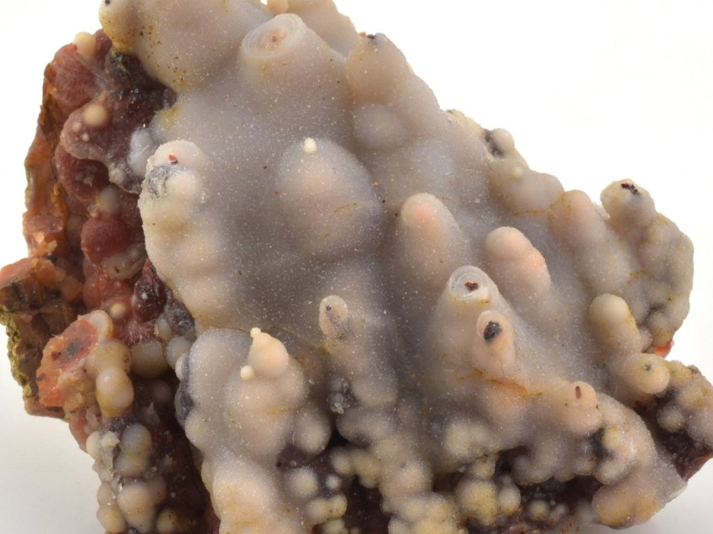 Zbarvení těchto achátových geod je pro tuto oblast velmi charakteristické – typický je růžový vnější okraj a načervenalé až hnědočervené odstíny způsobené přítomností hematitu. Vnější lem dutin bývá často tvořen růžovým opálem a na chalcedonu uvnitř se místy vykrystalizují jemné krystaly křišťálu. Vyskytují se zde také typické chalcedonové růže v růžových, načervenalých, fialových i šedobílých odstínech.
