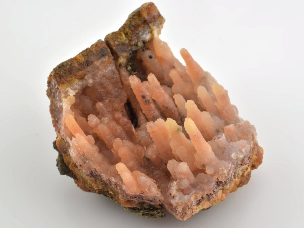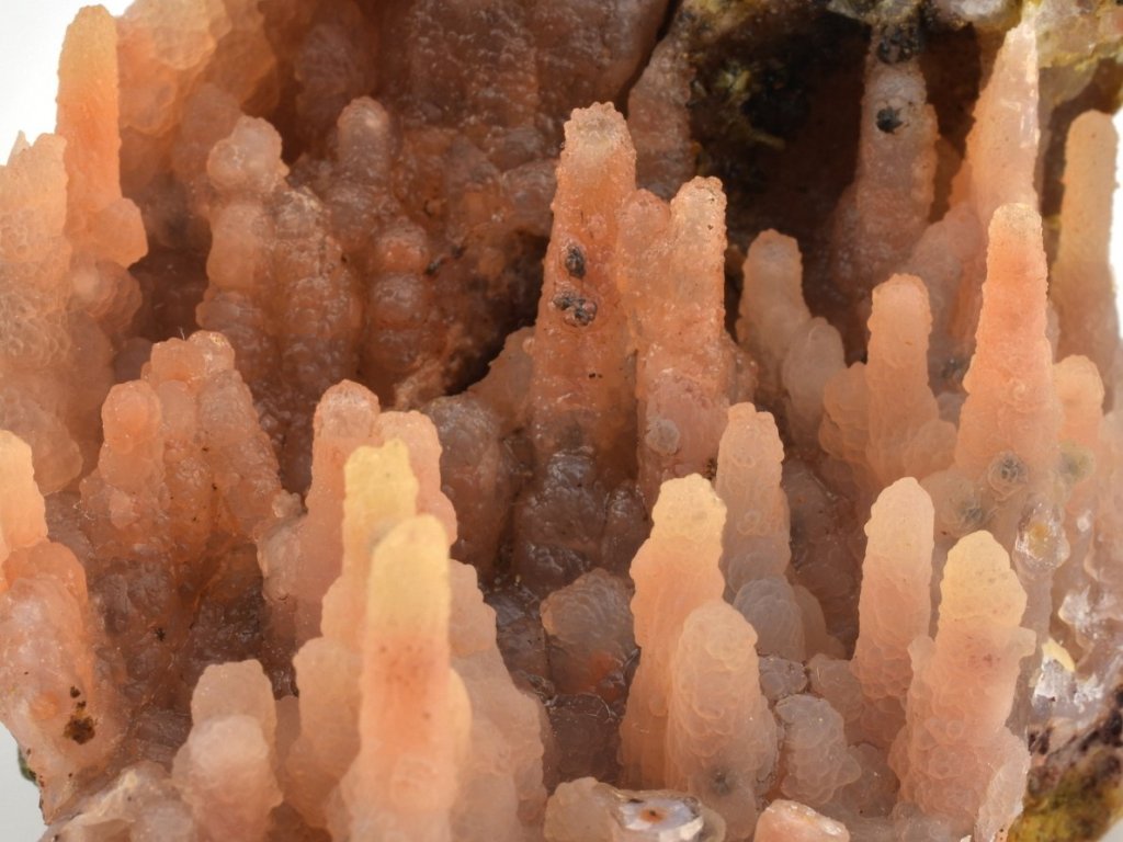 Zbarvení těchto achátových geod je pro tuto oblast velmi charakteristické – typický je růžový vnější okraj a načervenalé až hnědočervené odstíny způsobené přítomností hematitu. Vnější lem dutin bývá často tvořen růžovým opálem a na chalcedonu uvnitř se místy vykrystalizují jemné krystaly křišťálu. Vyskytují se zde také typické chalcedonové růže v růžových, načervenalých, fialových i šedobílých odstínech.