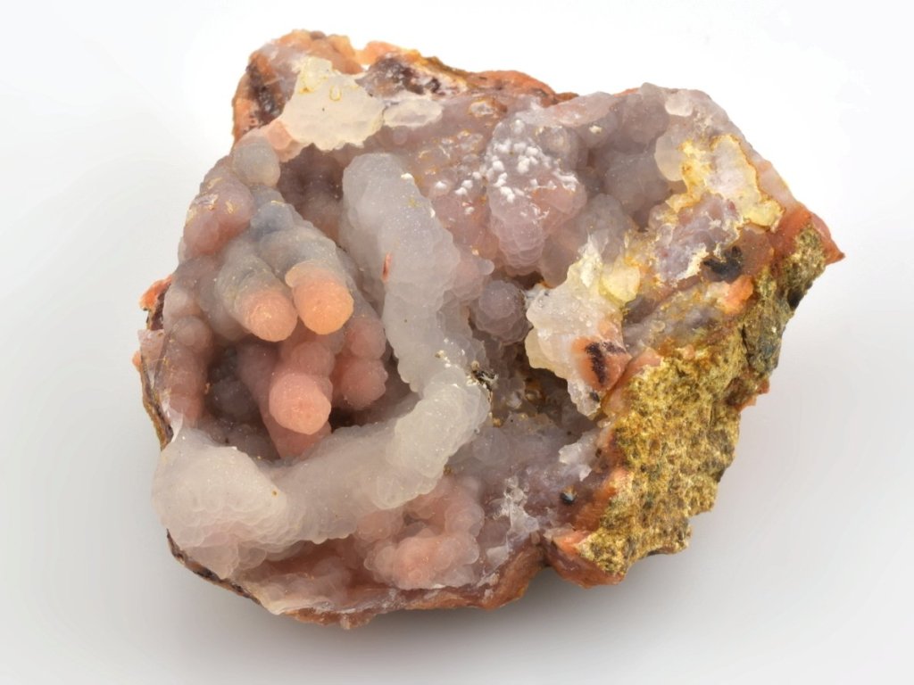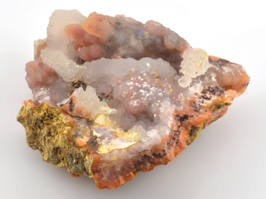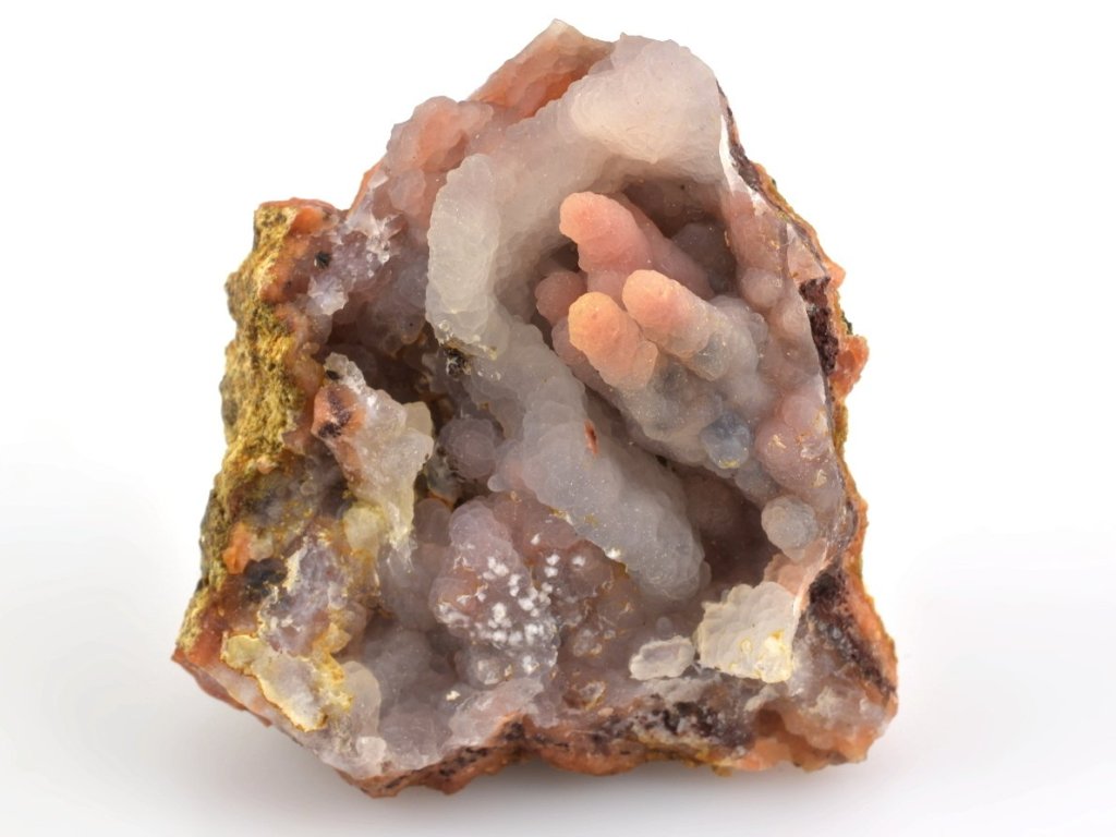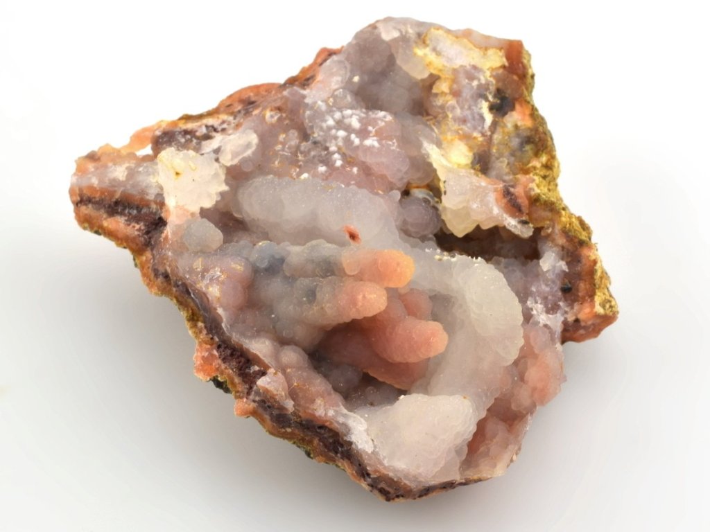 Zbarvení těchto achátových geod je pro tuto oblast velmi charakteristické – typický je růžový vnější okraj a načervenalé až hnědočervené odstíny způsobené přítomností hematitu. Vnější lem dutin bývá často tvořen růžovým opálem a na chalcedonu uvnitř se místy vykrystalizují jemné krystaly křišťálu. Vyskytují se zde také typické chalcedonové růže v růžových, načervenalých, fialových i šedobílých odstínech.