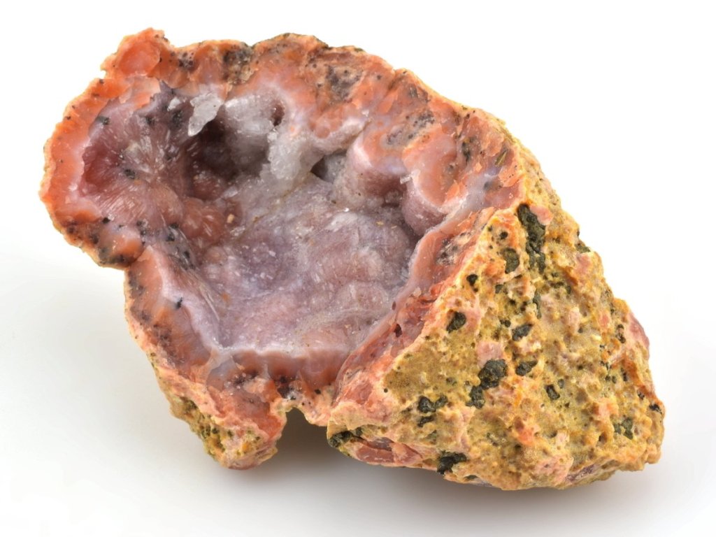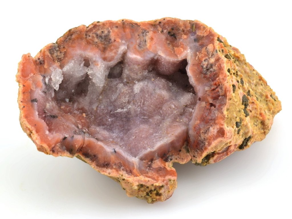 Zbarvení těchto achátových geod je pro tuto oblast velmi charakteristické – typický je růžový vnější okraj a načervenalé až hnědočervené odstíny způsobené přítomností hematitu. Vnější lem dutin bývá často tvořen růžovým opálem a na chalcedonu uvnitř se místy vykrystalizují jemné krystaly křišťálu. Vyskytují se zde také typické chalcedonové růže v růžových, načervenalých, fialových i šedobílých odstínech.