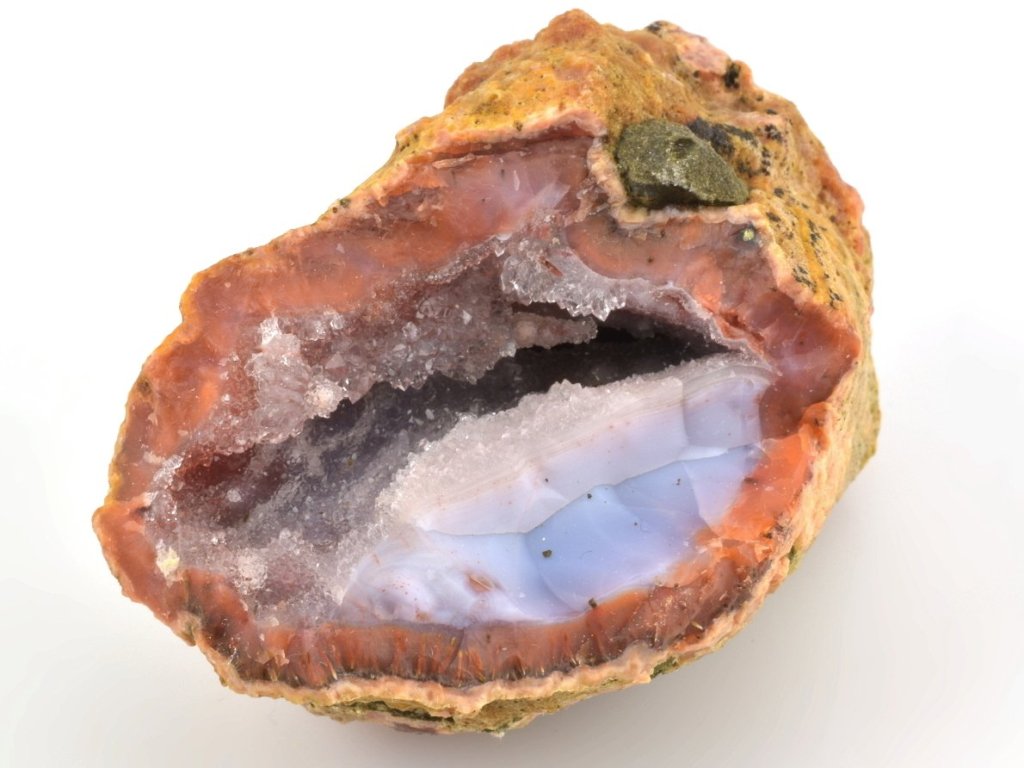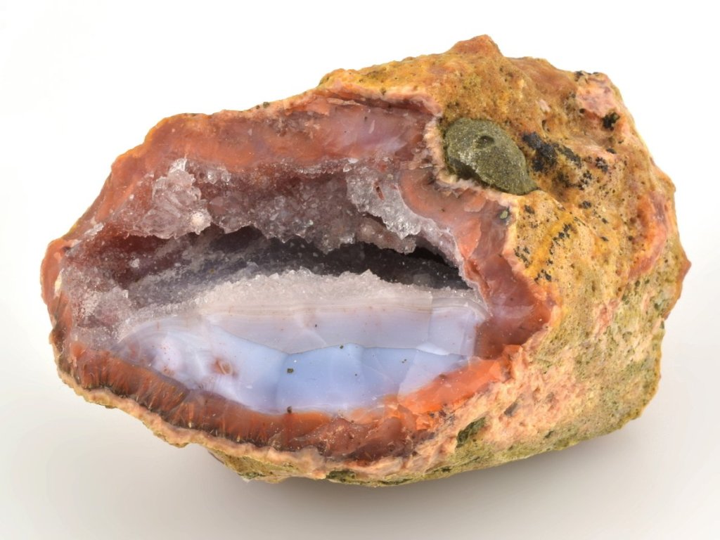 Zbarvení těchto achátových geod je pro tuto oblast velmi charakteristické – typický je růžový vnější okraj a načervenalé až hnědočervené odstíny způsobené přítomností hematitu. Vnější lem dutin bývá často tvořen růžovým opálem a na chalcedonu uvnitř se místy vykrystalizují jemné krystaly křišťálu. Vyskytují se zde také typické chalcedonové růže v růžových, načervenalých, fialových i šedobílých odstínech.