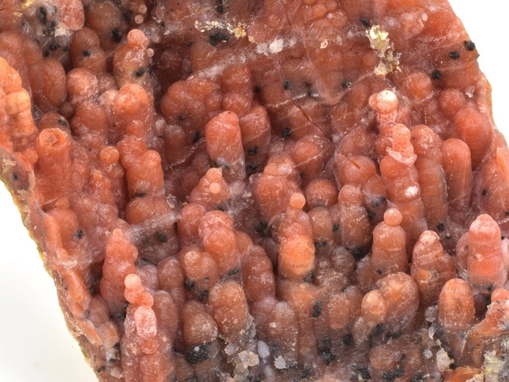 Zbarvení těchto achátových geod je pro tuto oblast velmi charakteristické – typický je růžový vnější okraj a načervenalé až hnědočervené odstíny způsobené přítomností hematitu. Vnější lem dutin bývá často tvořen růžovým opálem a na chalcedonu uvnitř se místy vykrystalizují jemné krystaly křišťálu. Vyskytují se zde také typické chalcedonové růže v růžových, načervenalých, fialových i šedobílých odstínech.