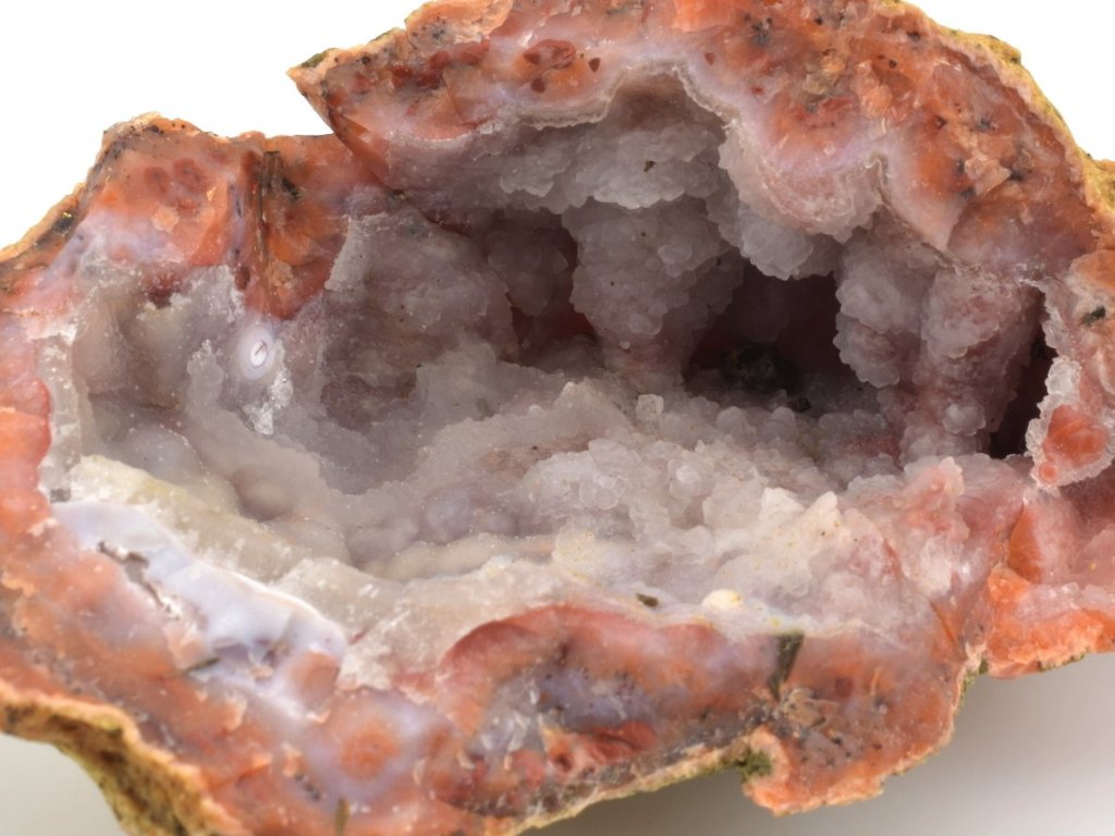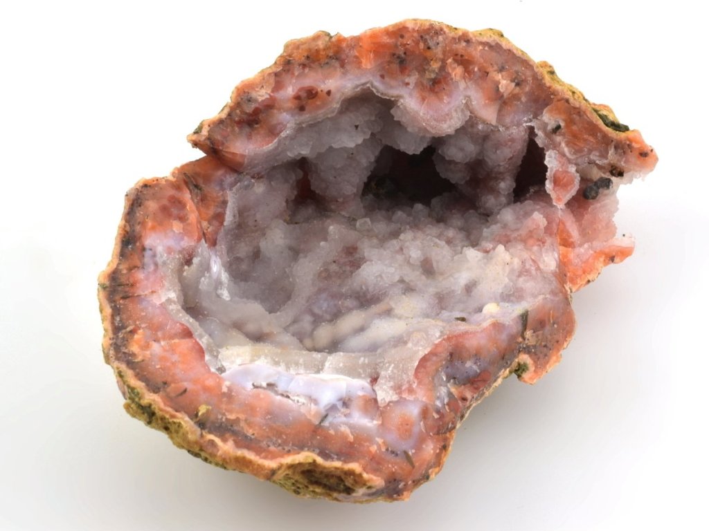 Zbarvení těchto achátových geod je pro tuto oblast velmi charakteristické – typický je růžový vnější okraj a načervenalé až hnědočervené odstíny způsobené přítomností hematitu. Vnější lem dutin bývá často tvořen růžovým opálem a na chalcedonu uvnitř se místy vykrystalizují jemné krystaly křišťálu. Vyskytují se zde také typické chalcedonové růže v růžových, načervenalých, fialových i šedobílých odstínech.